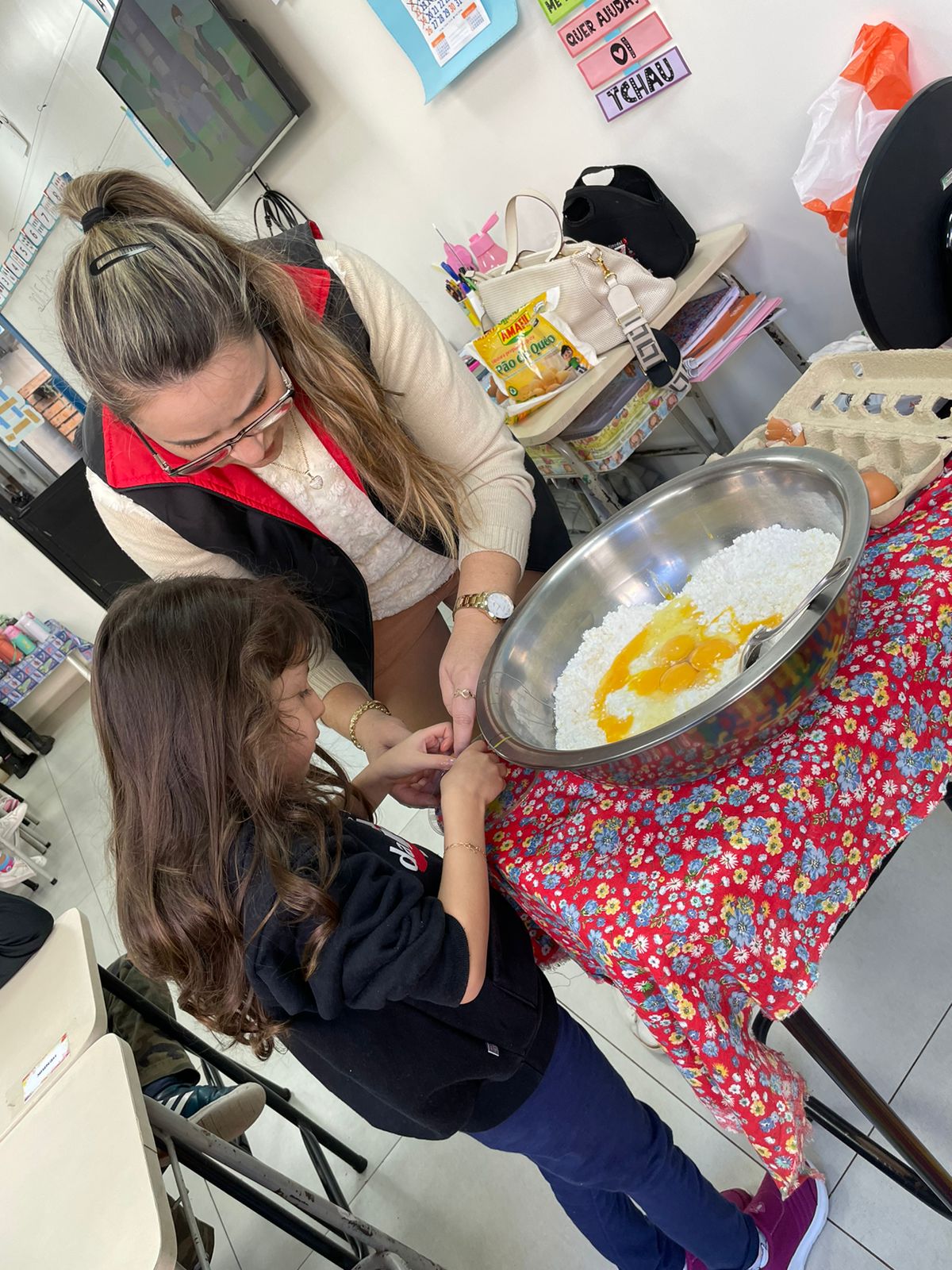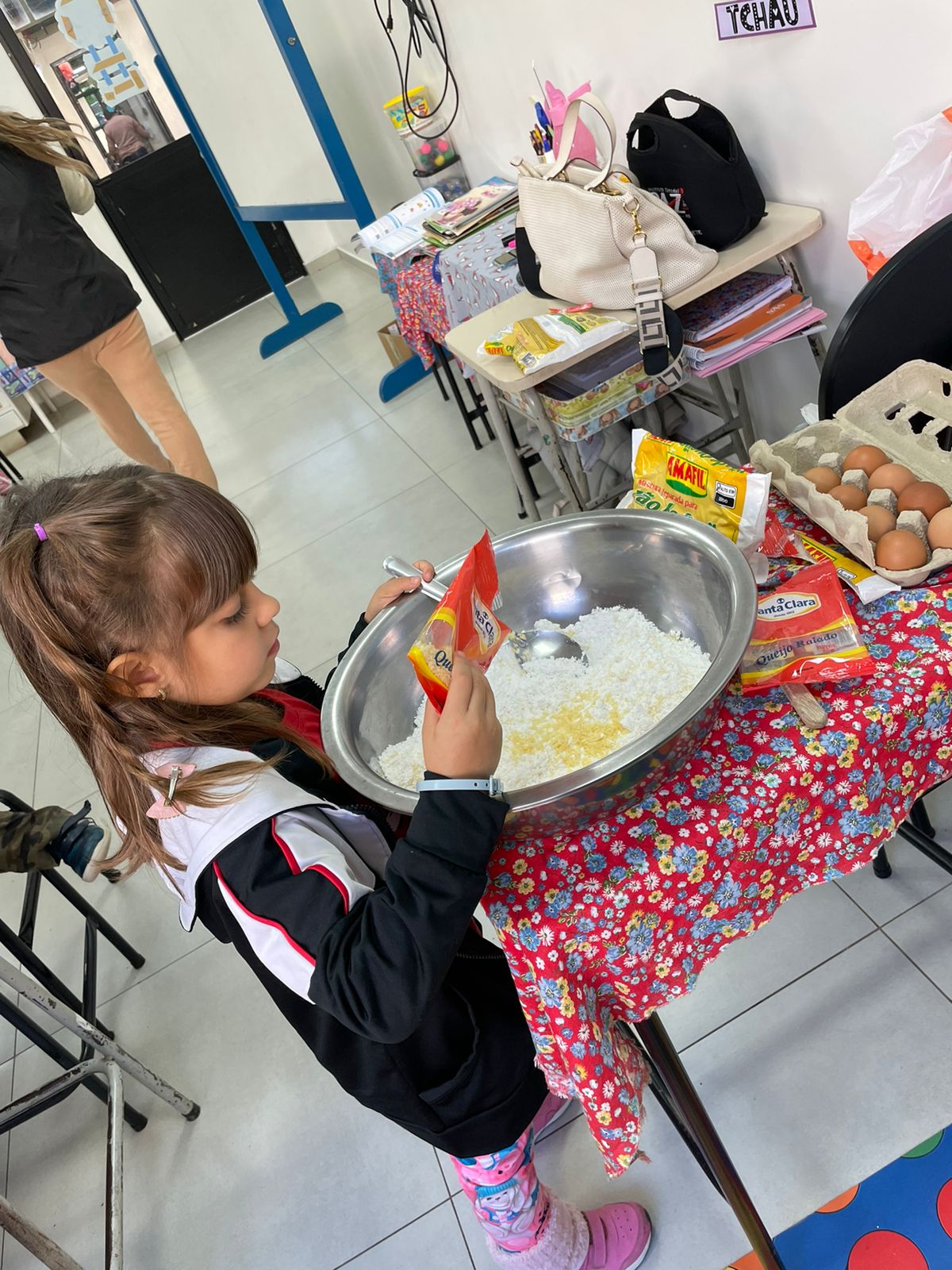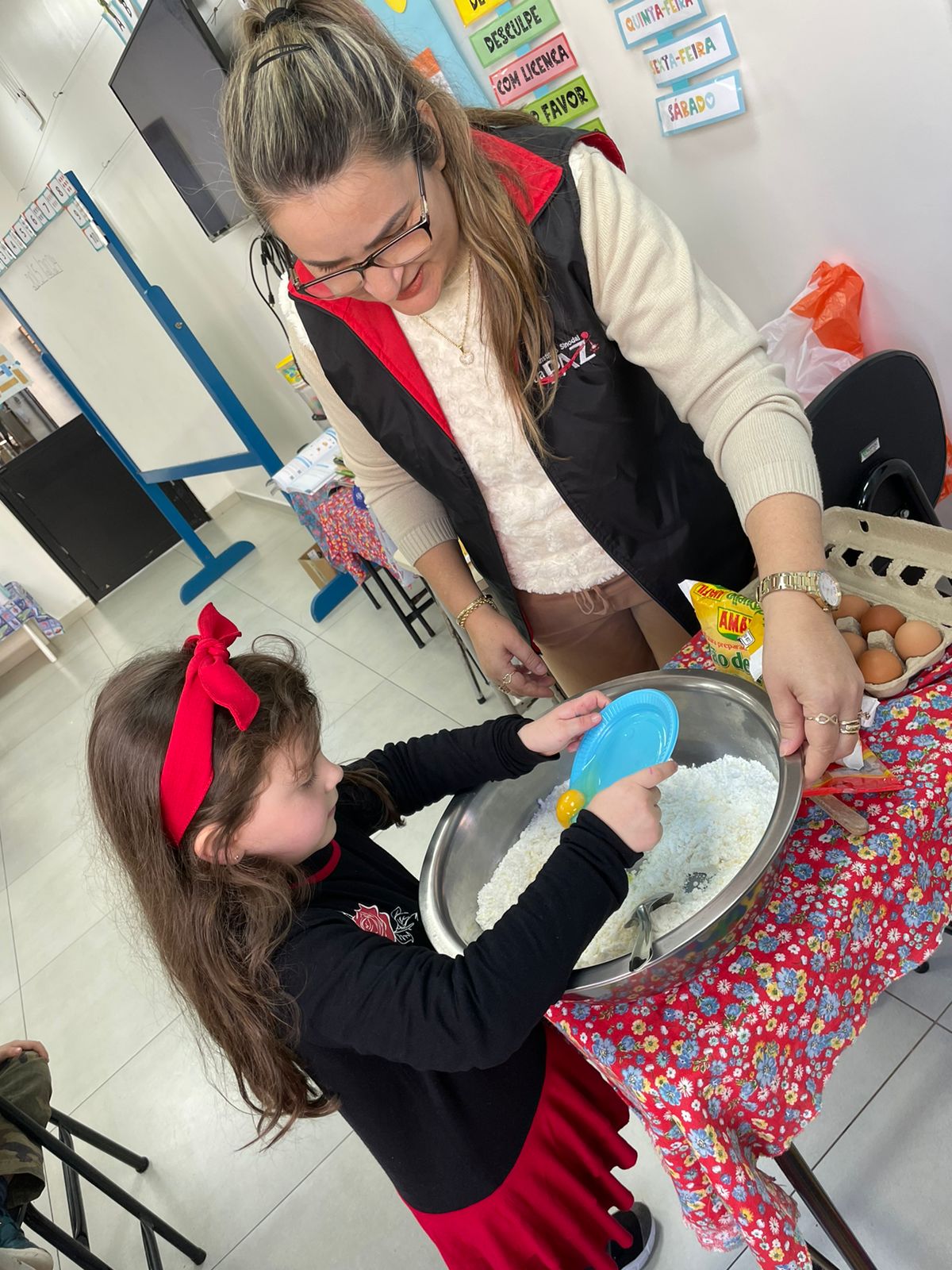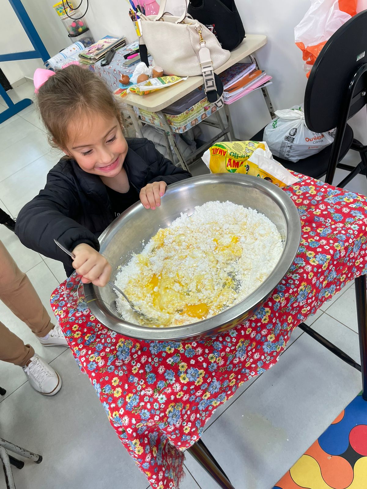A turma da Pré-escola 05 anos da Professora Janete, durante a Sequência Didática “Comidas do Brasil”, realizaram uma pesquisa sobre um prato típico do Brasil, em seguida preparamos uma deliciosa receita de pão de queijo.