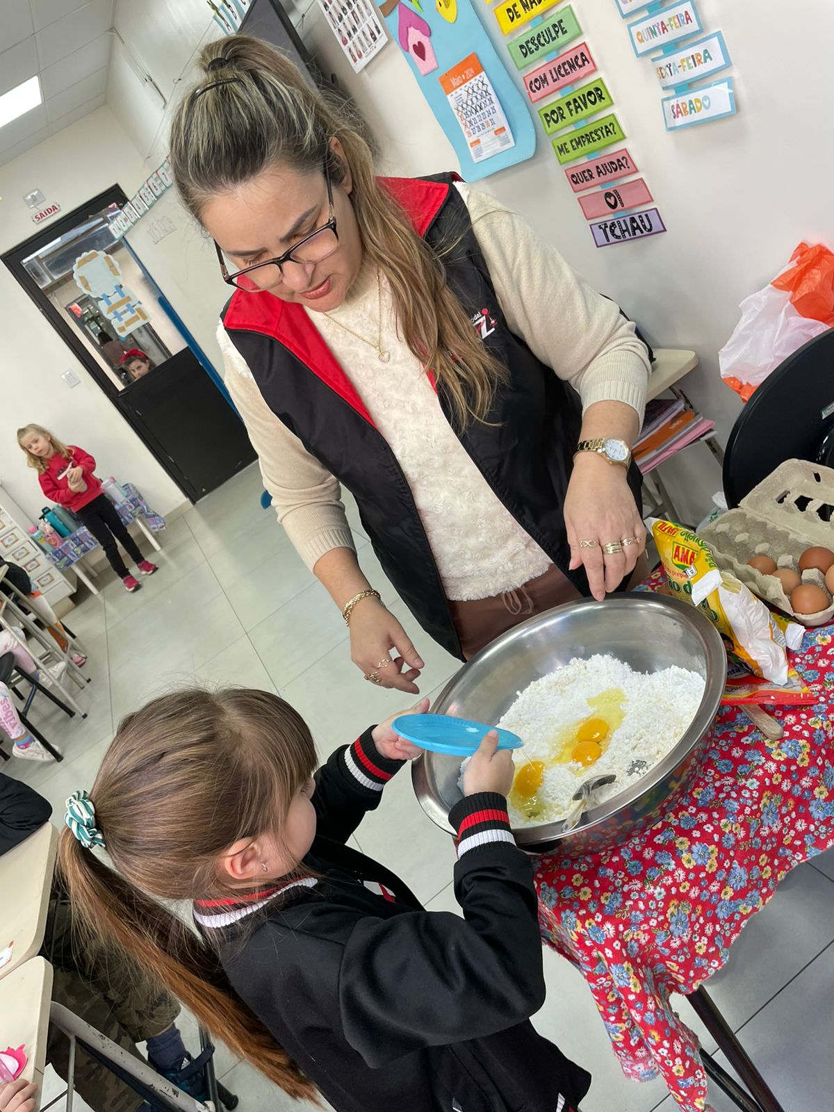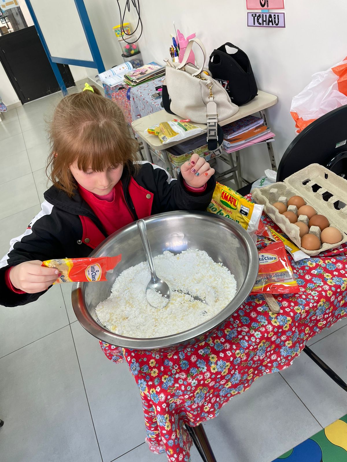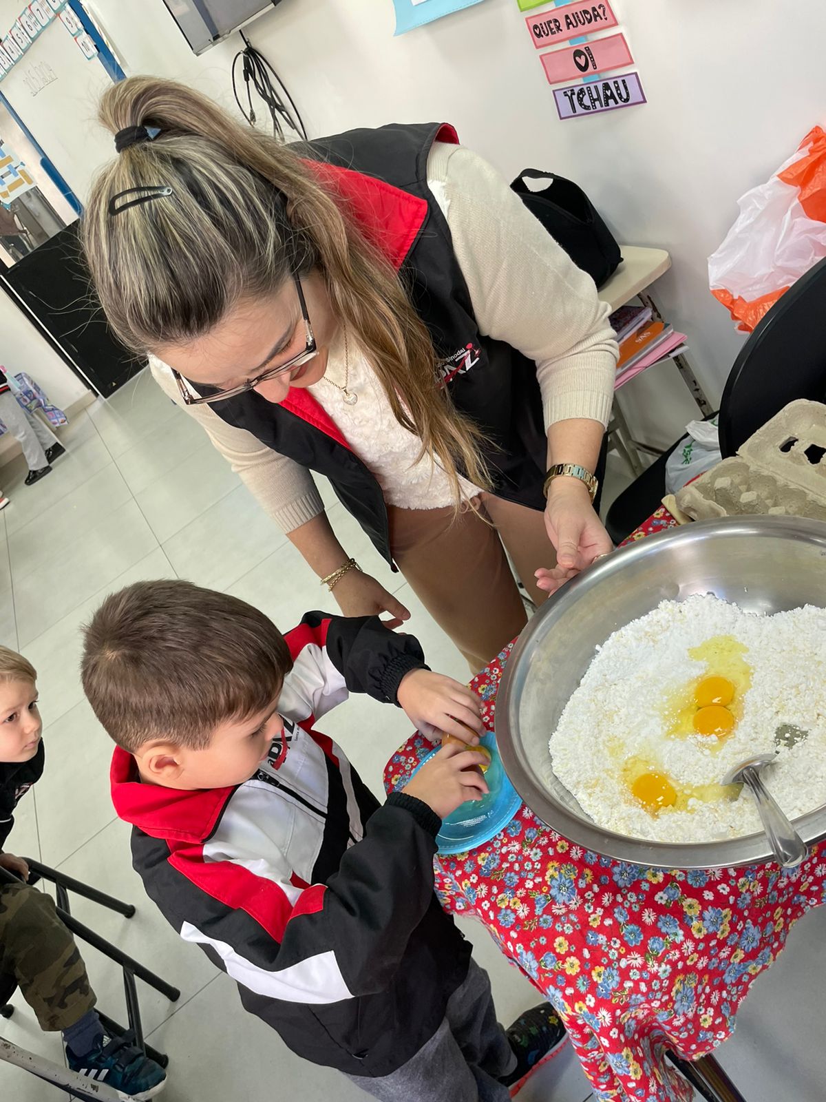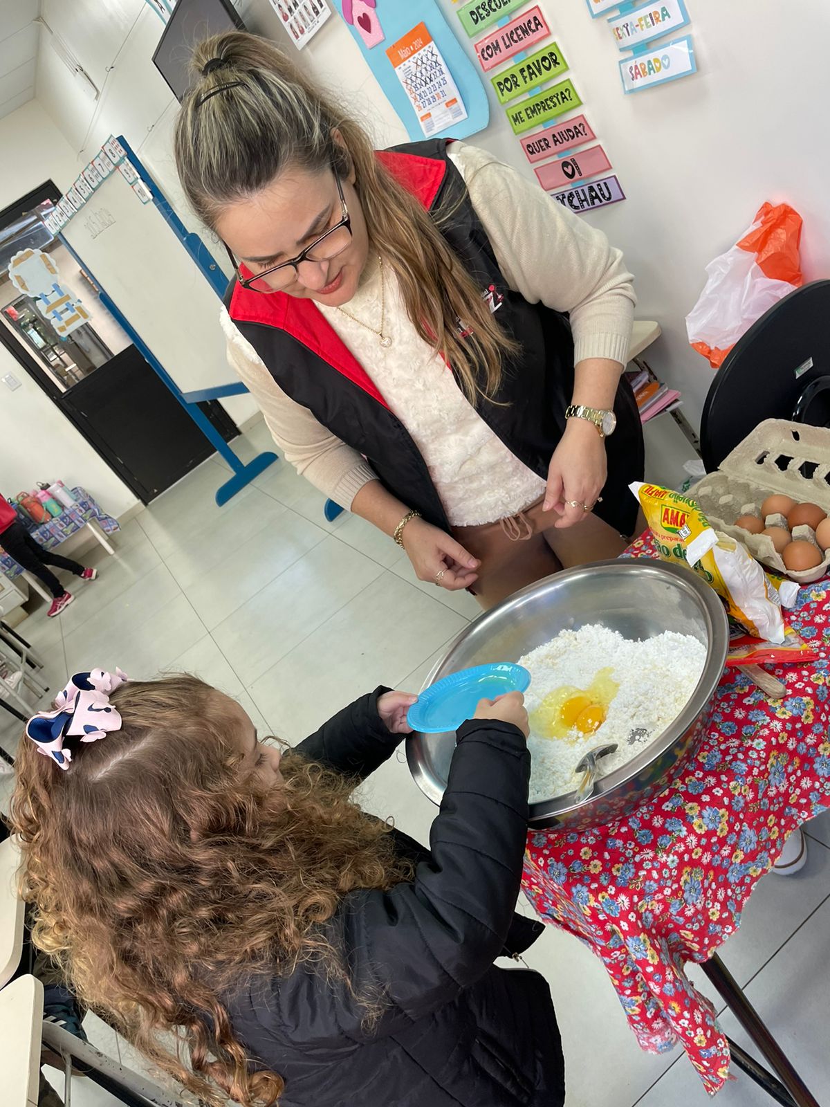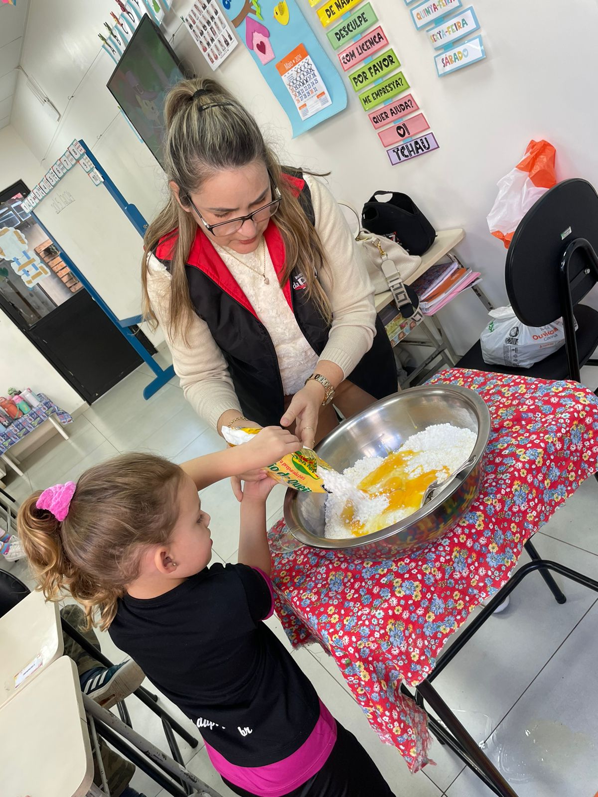 A turma da Pré-escola 05 anos da Professora Janete, durante a Sequência Didática “Comidas do Brasil”, realizaram uma pesquisa sobre um prato típico do Brasil, em seguida preparamos uma deliciosa receita de pão de queijo.