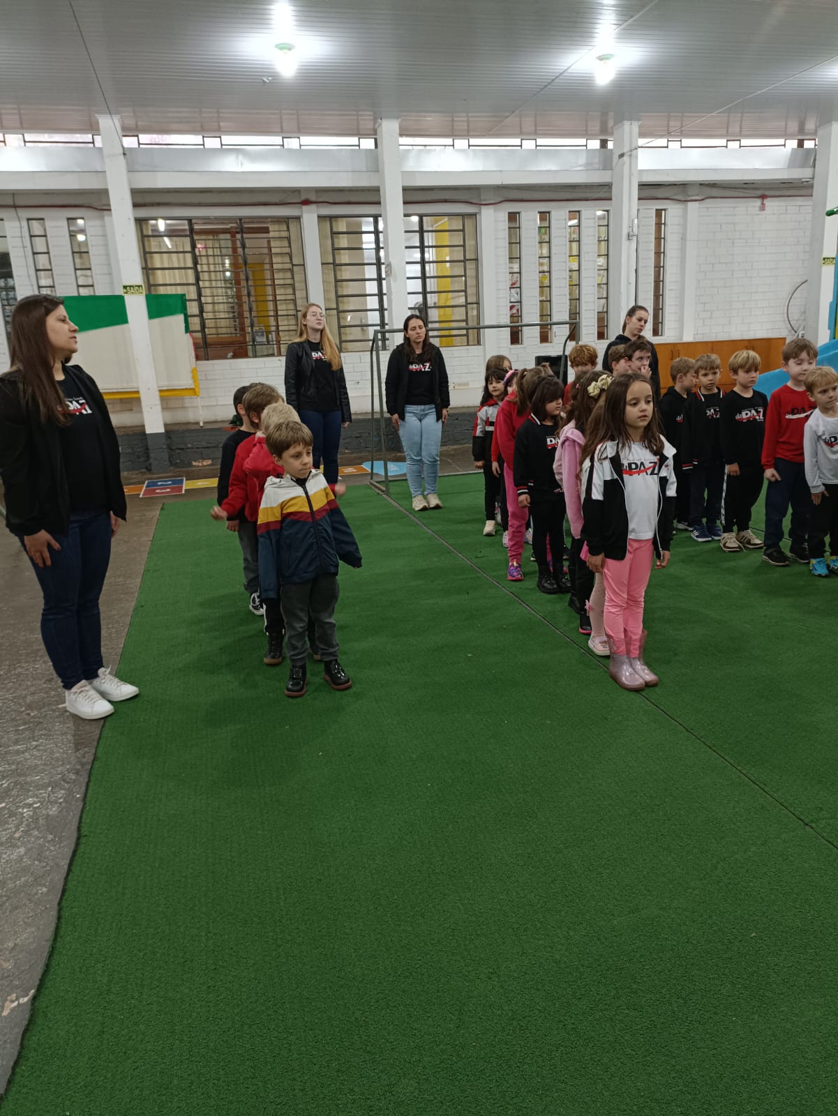 As turmas da Pré-escola 05 anos, com as professoras Ana Paula e Janete, também viveram um momento especial na Semana da Pátria: o hasteamento da bandeira.