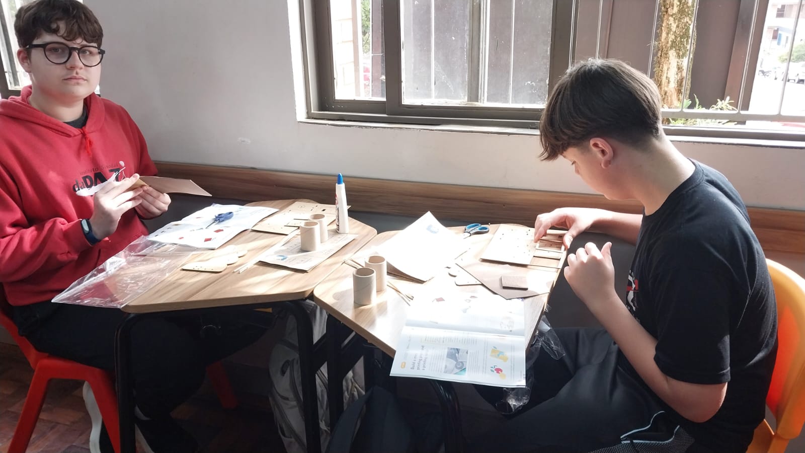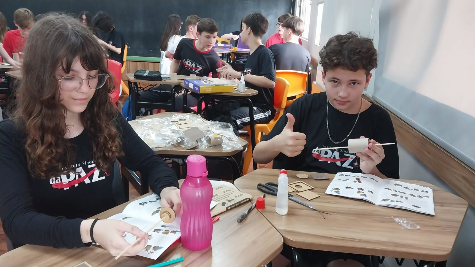 As turmas dos 8º ano A do Ensino Fundamental mergulharam na história da impressão gráfica e, a partir desse conhecimento, tiveram o desafio de projetar suas próprias prensas manuais.