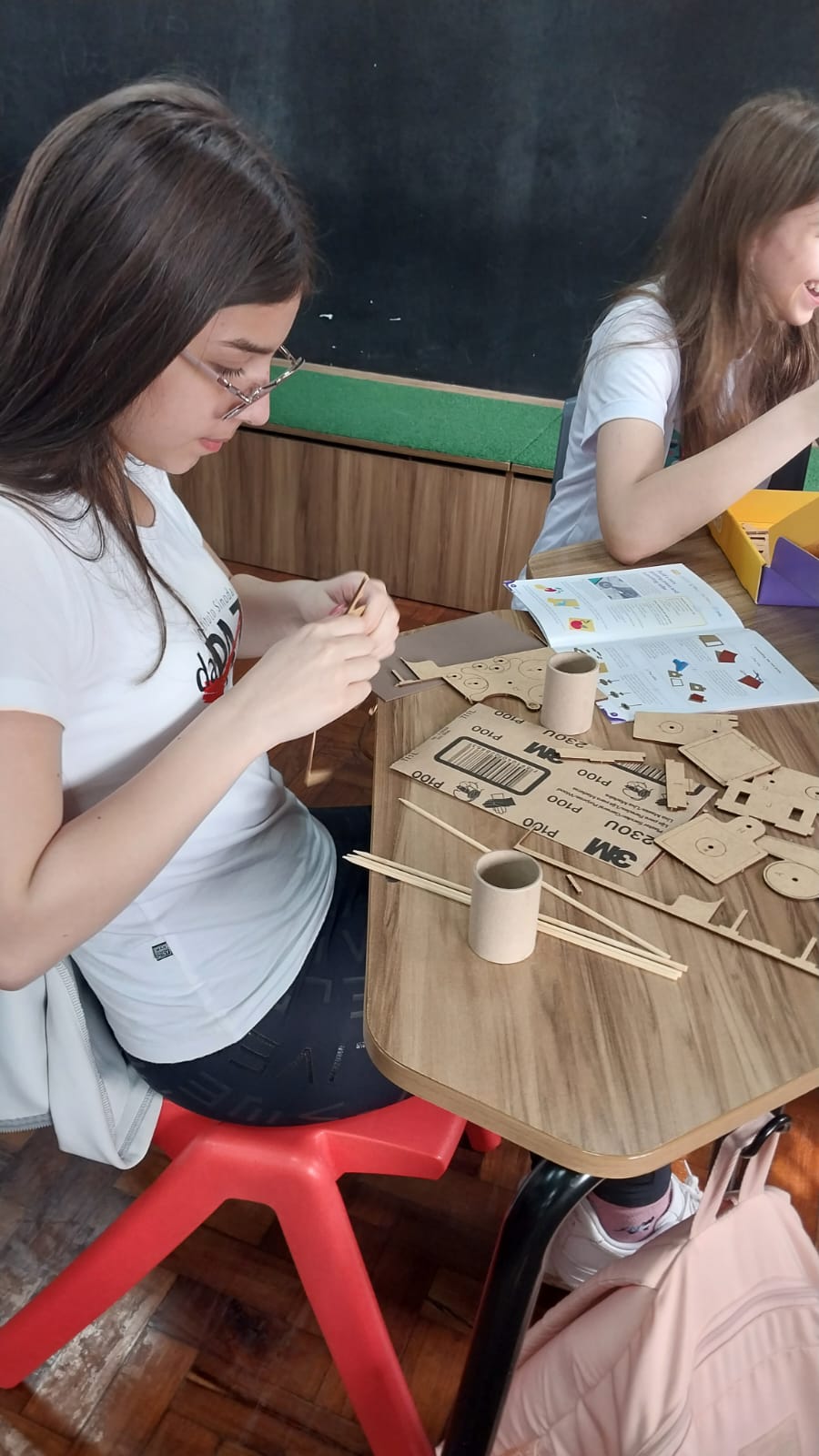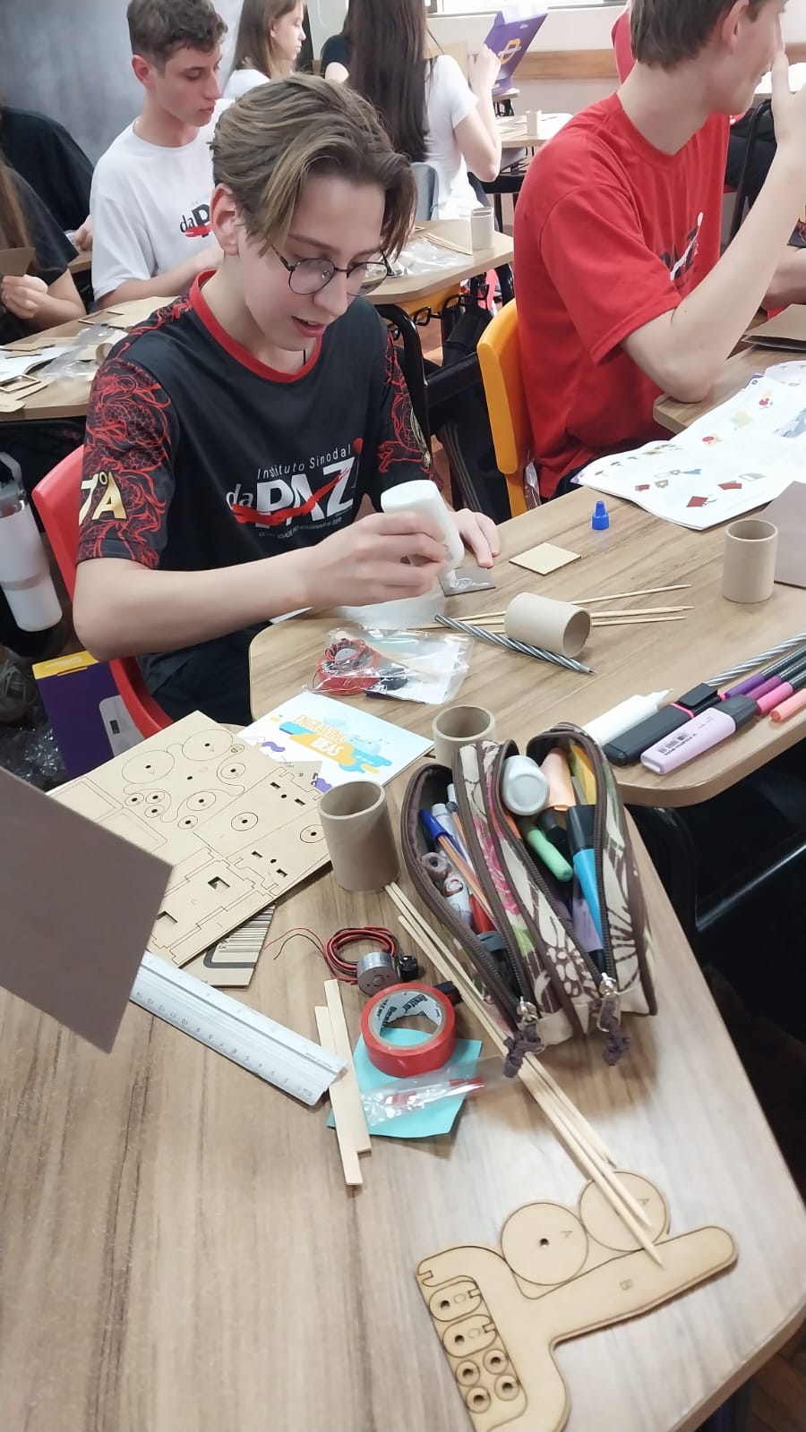 E não parou por aí: cada dupla apresentou seu projeto em Língua Inglesa, conectando os conceitos de Creative Learning e a metodologia STEAM, que desenvolvem habilidades essenciais para o futuro.
