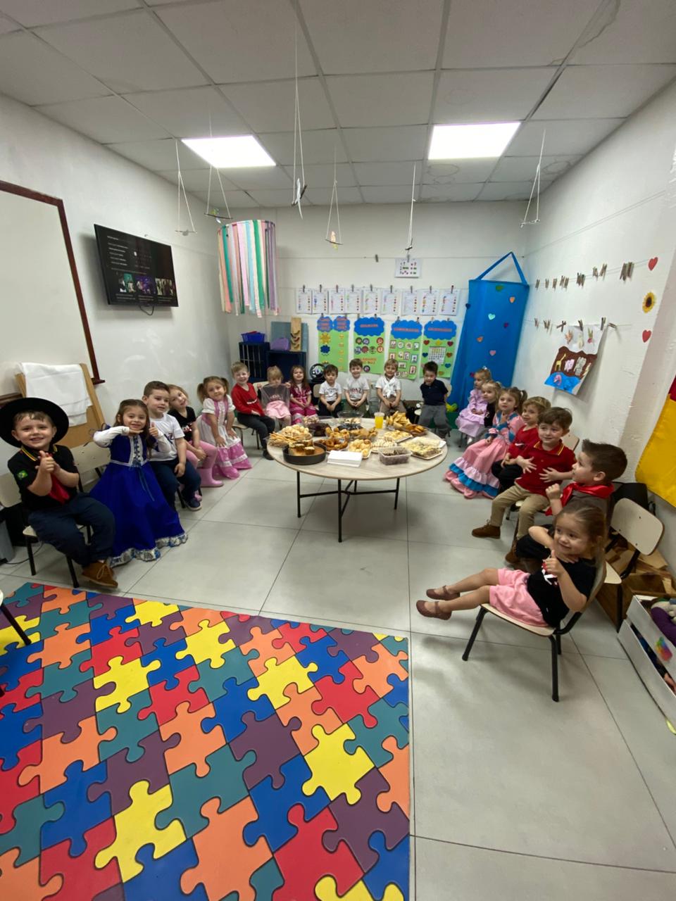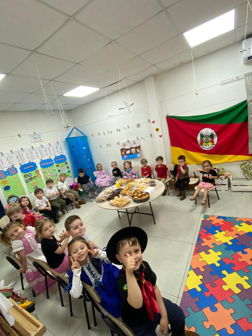 Dentro da programação dos Festejos Farroupilhas, as turmas do Infantil 03 anos, das professoras Camila e Vanessa, viveram uma tarde especial de integração e tradição: a Tarde do Chimarrão acompanhada de um delicioso lanche compartilhado!