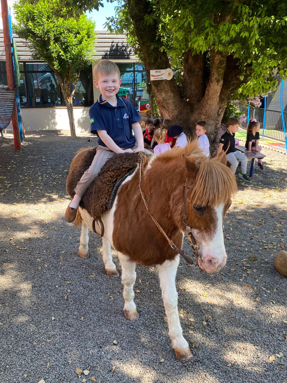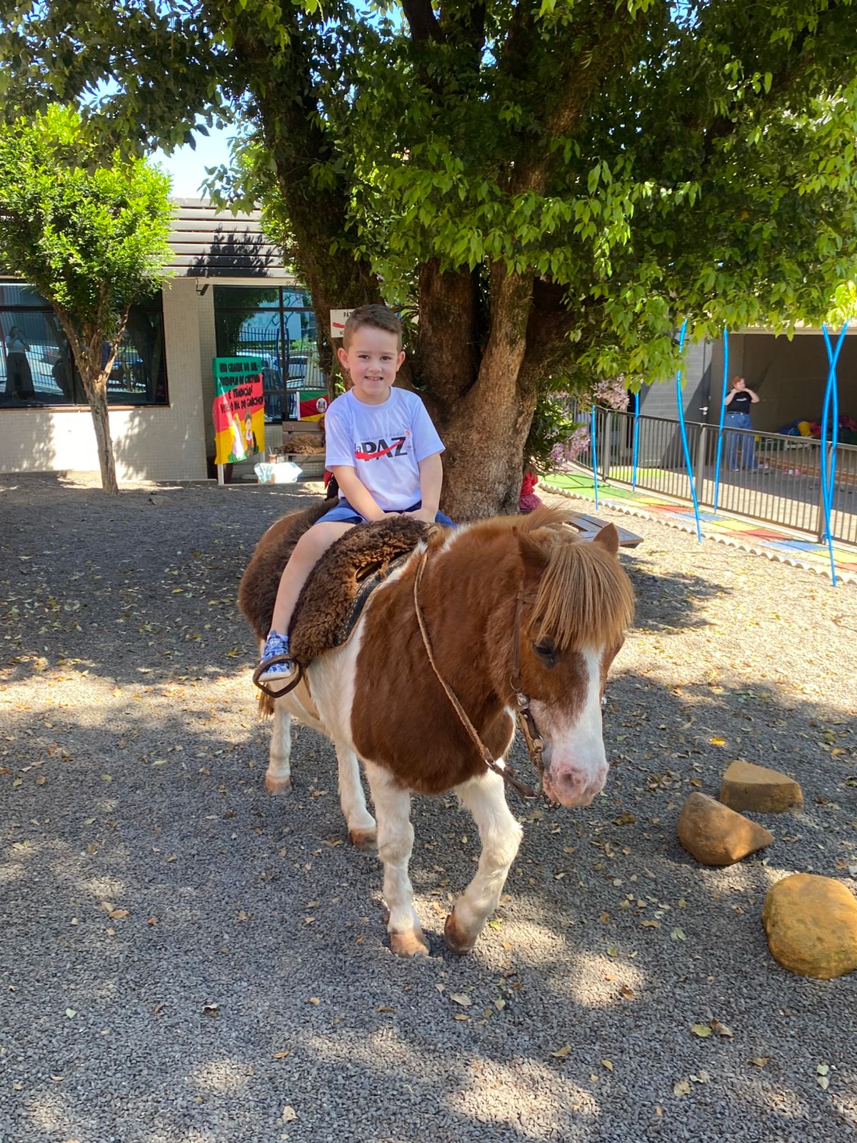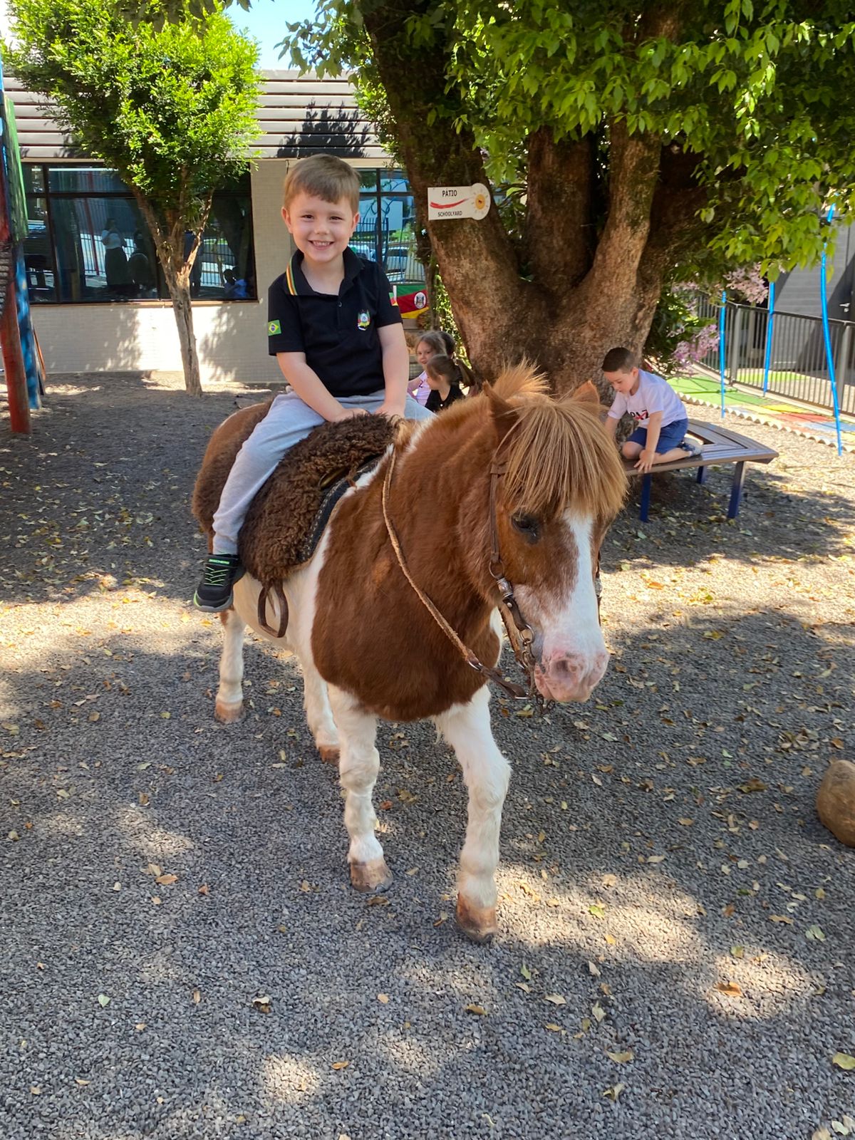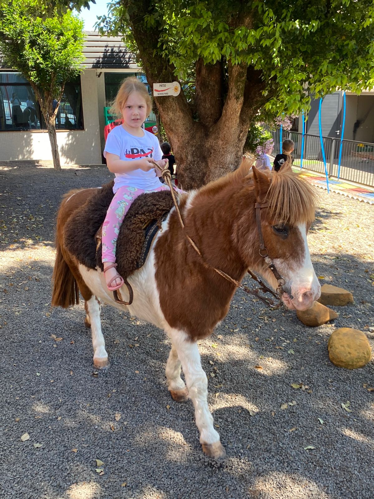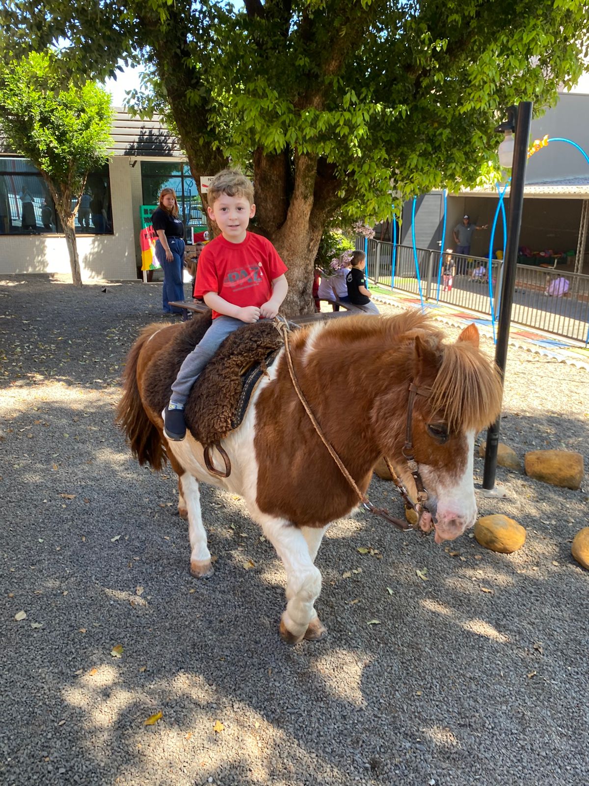 A turma da Pré-escola 03 anos, da professora Vanessa, viveu uma experiência cheia de encantamento com a visita do cavalo Pipoca!