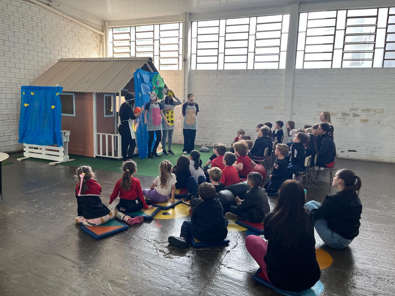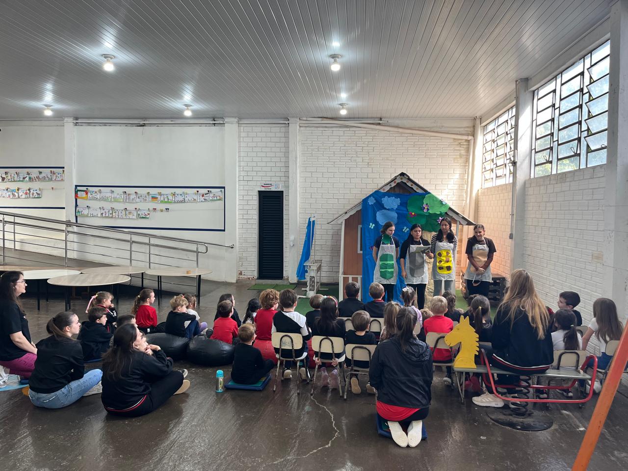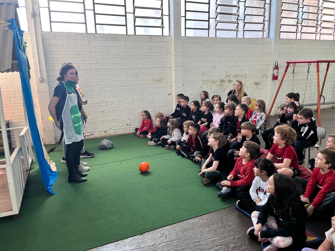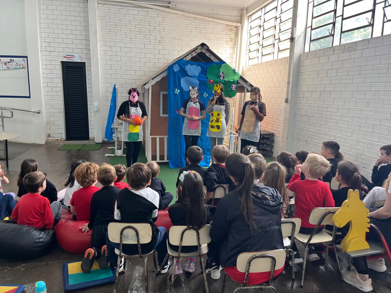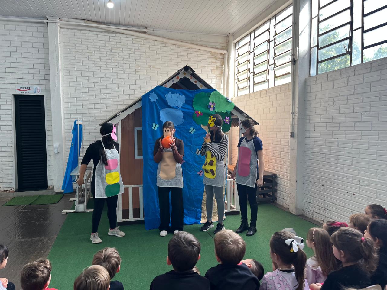 Com muita imaginação e curiosidade, os pequenos embarcaram na história “Quem ficou com o pêssego?”, explorando valores como a amizade, a generosidade e o respeito ao outro.
