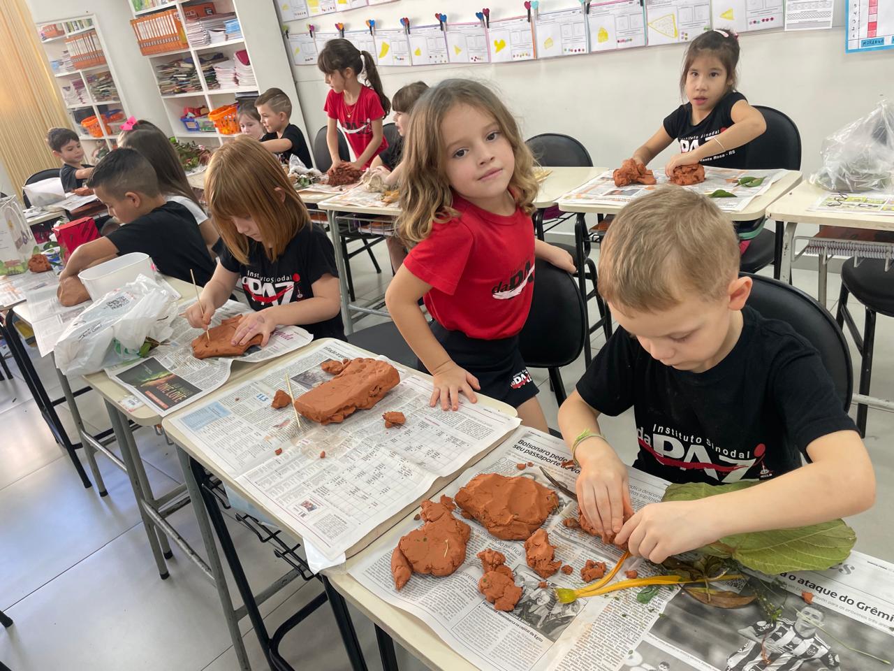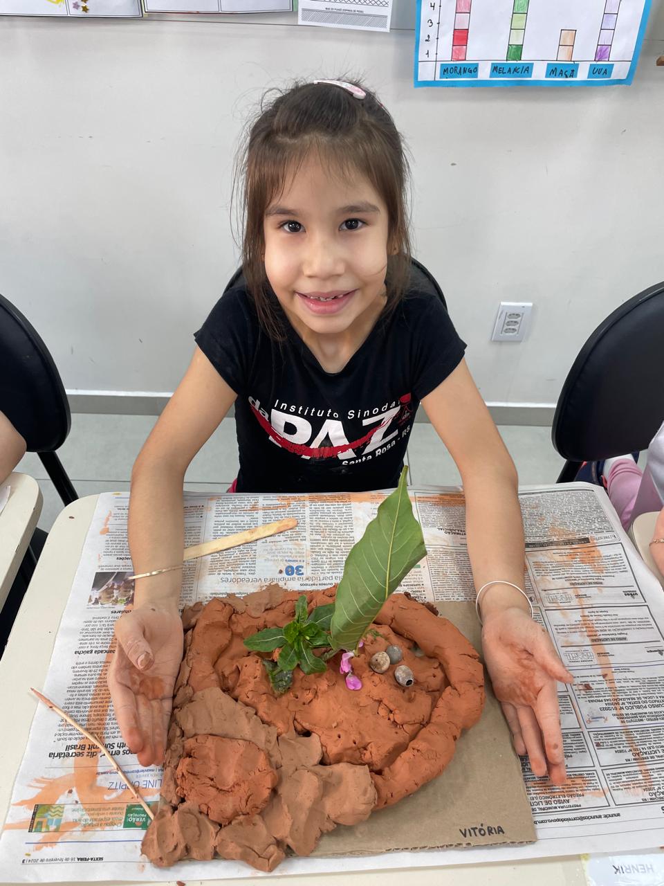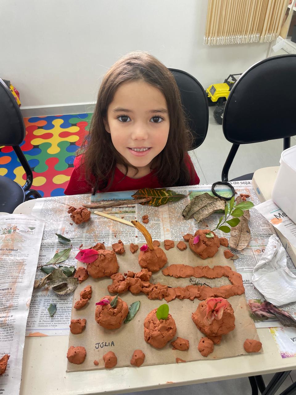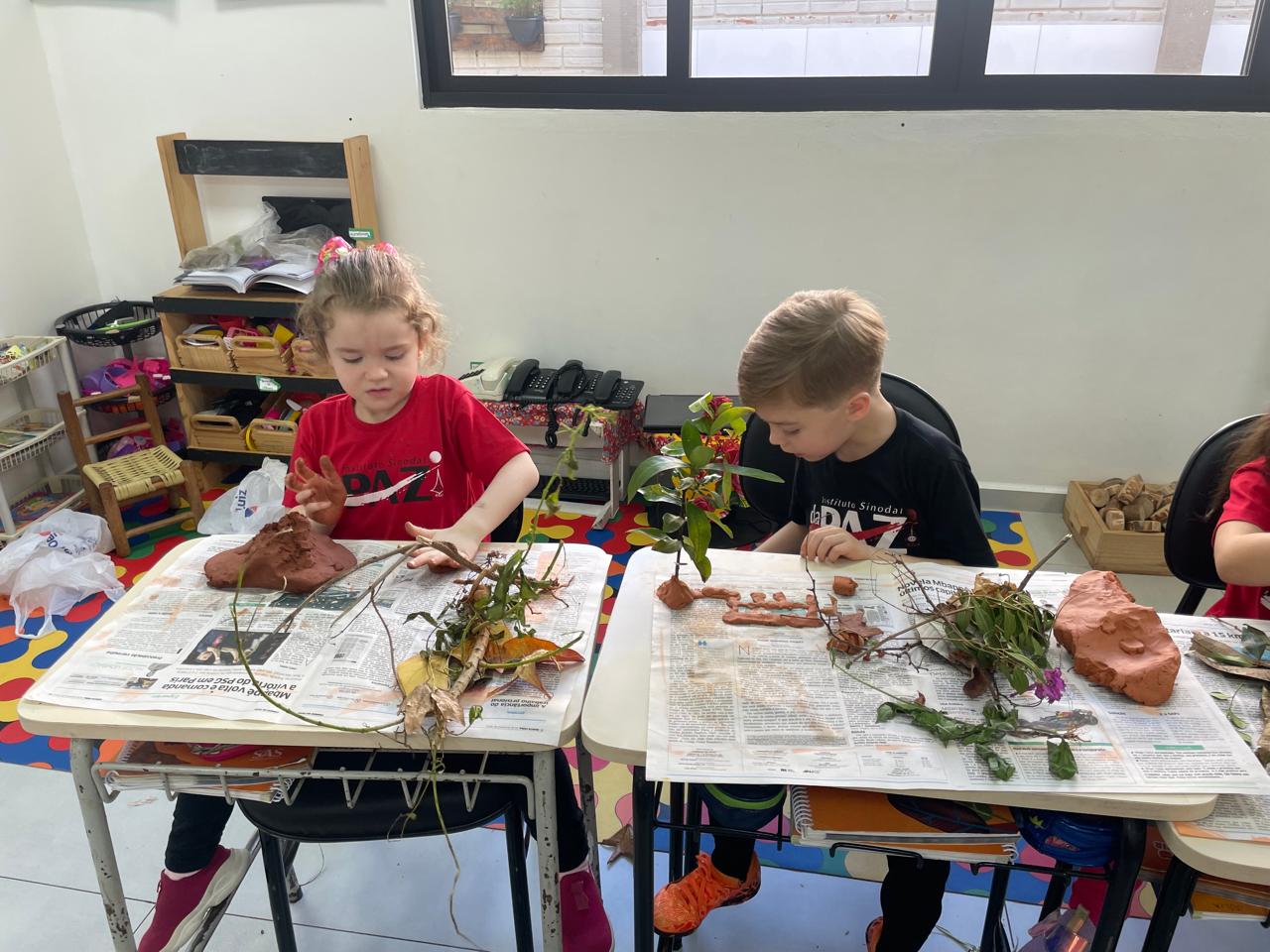 Durante o estudo da Sequência Didática: "MISTURA COM ELEMENTOS NATURAIS" a turma da Pré-escola 05 anos da Professora Janete, trabalhou com argila e elementos naturais para modelar uma linda escultura.