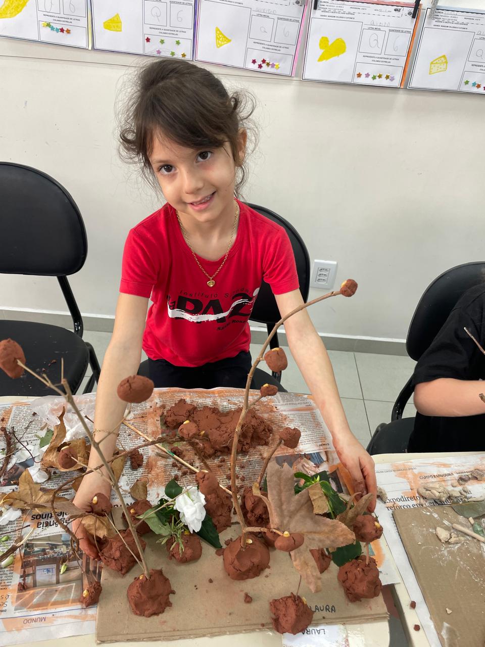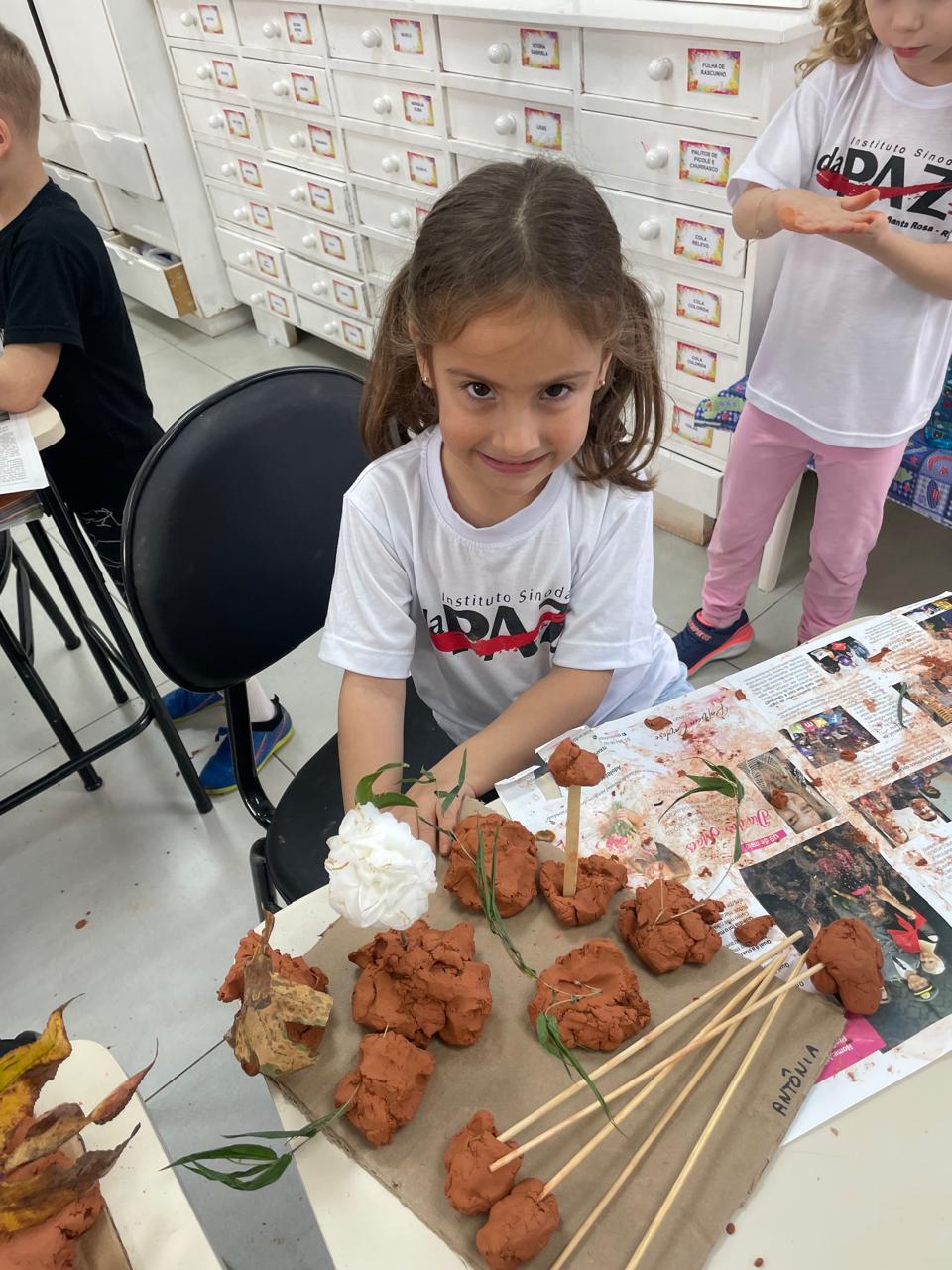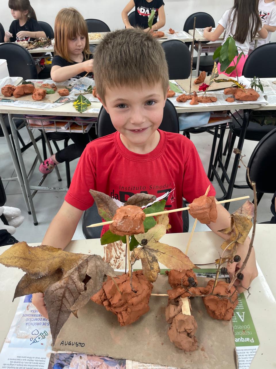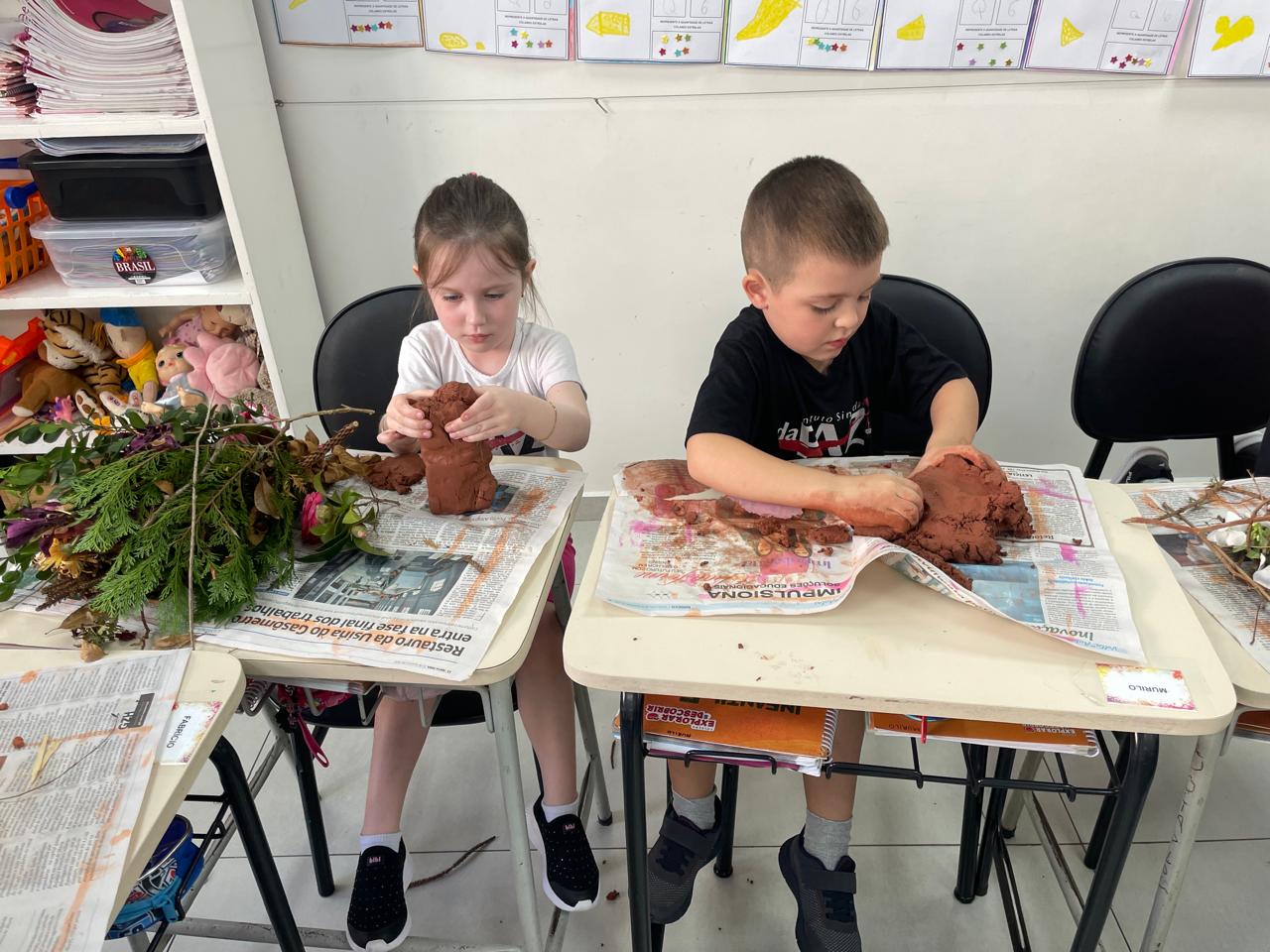 Durante o estudo da Sequência Didática: "MISTURA COM ELEMENTOS NATURAIS" a turma da Pré-escola 05 anos da Professora Janete, trabalhou com argila e elementos naturais para modelar uma linda escultura.