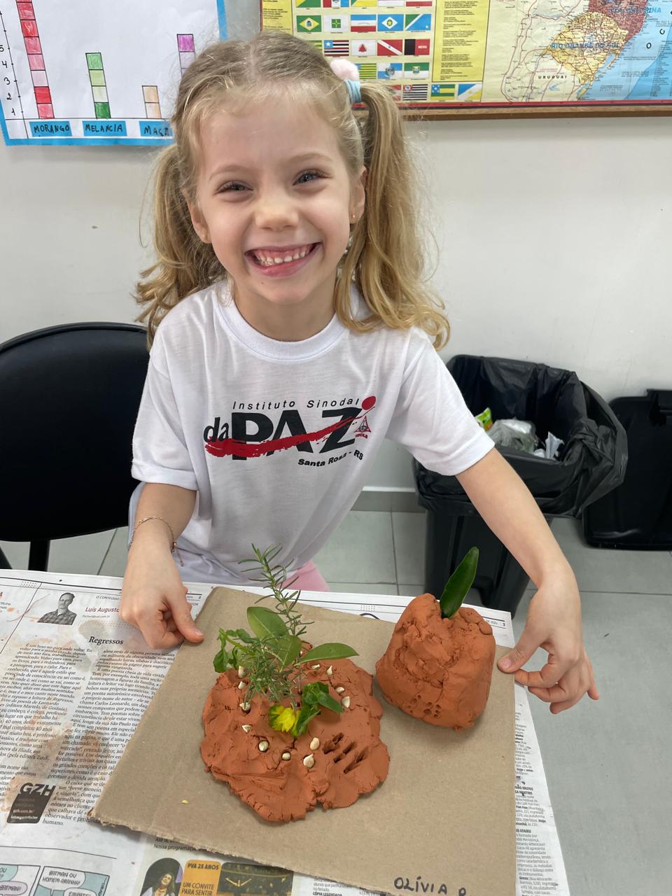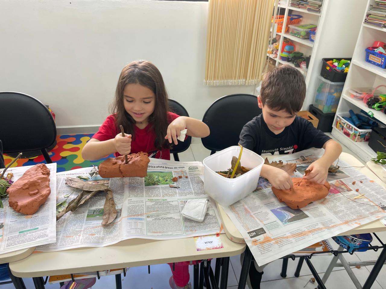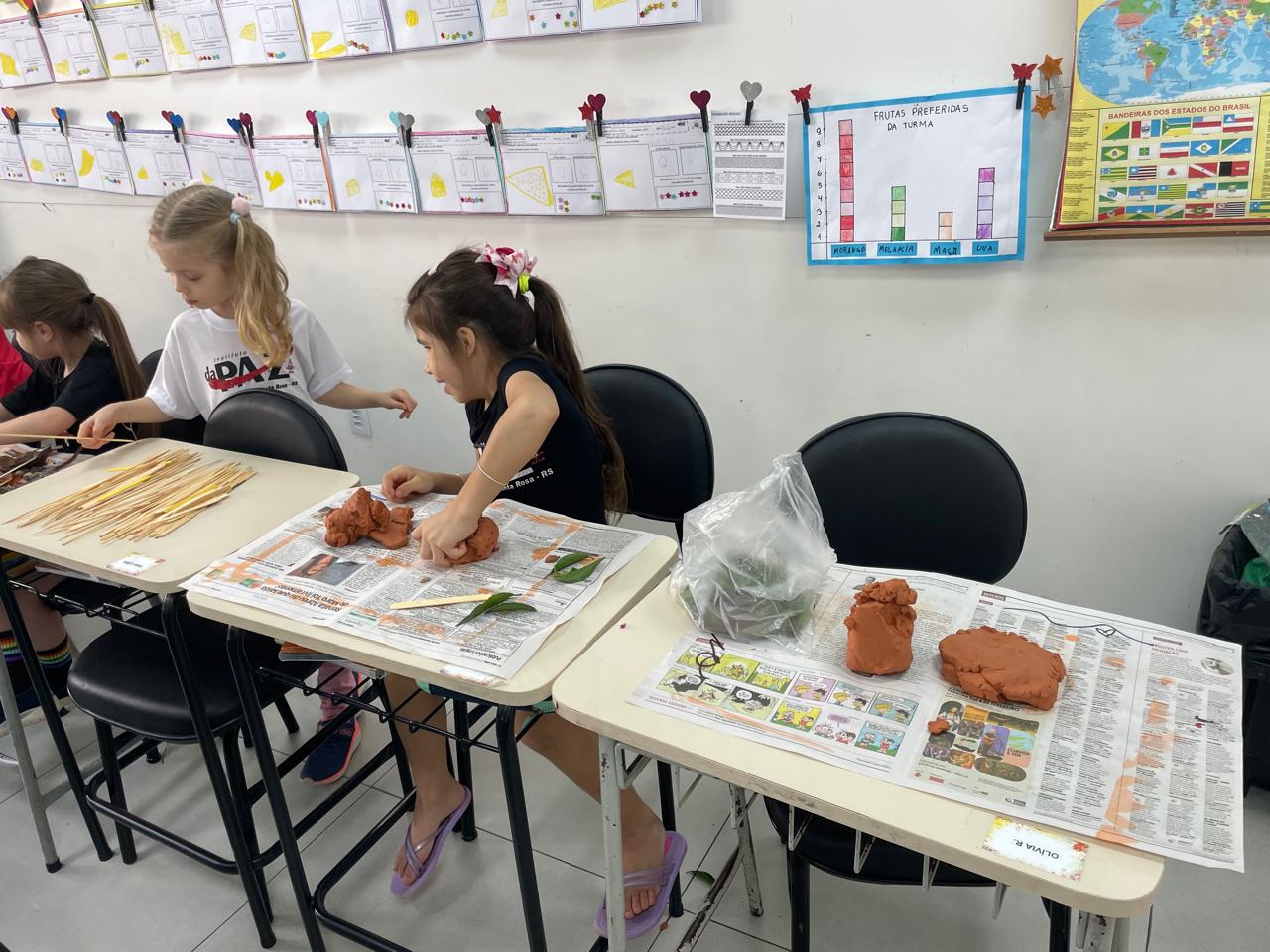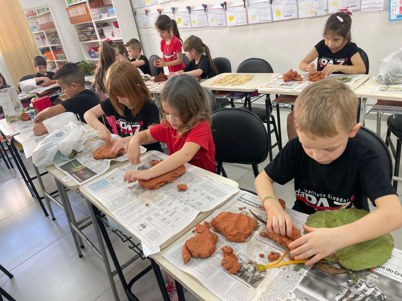 Durante o estudo da Sequência Didática: "MISTURA COM ELEMENTOS NATURAIS" a turma da Pré-escola 05 anos da Professora Janete, trabalhou com argila e elementos naturais para modelar uma linda escultura.