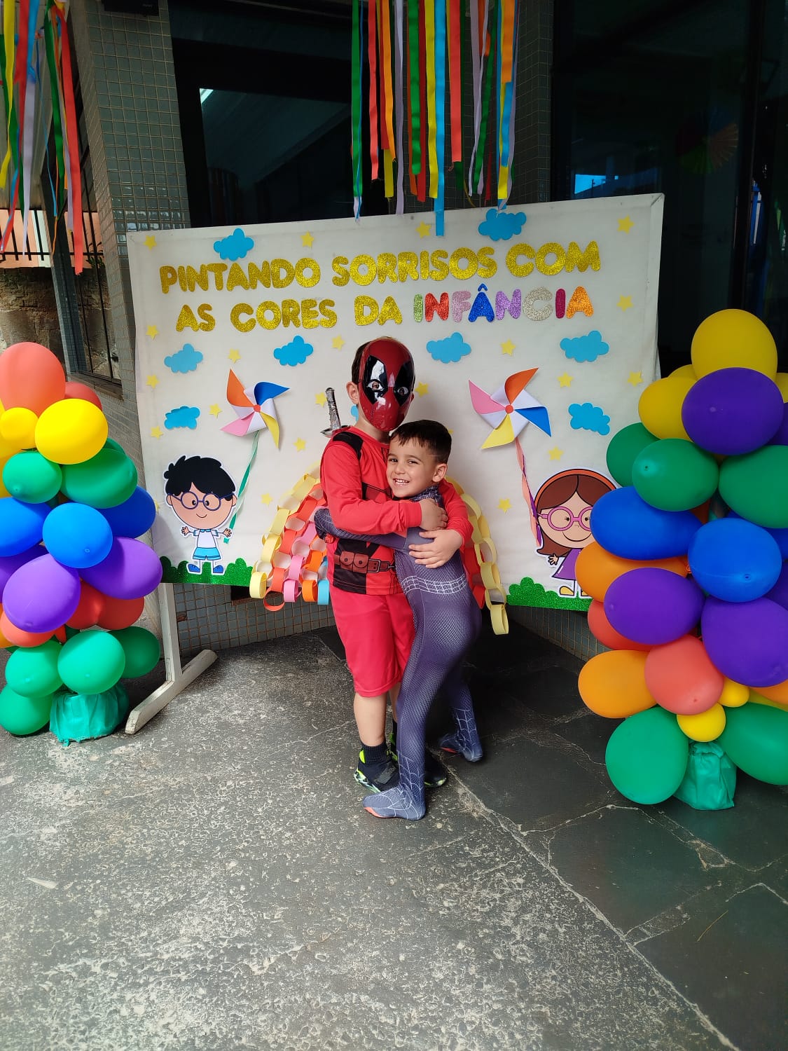 As crianças chegaram com fantasias coloridas e criativas, trazendo personagens de todos os tipos. Entre risadas, danças e brincadeiras, o faz de conta tomou conta da sala, tornando este momento verdadeiramente mágico!