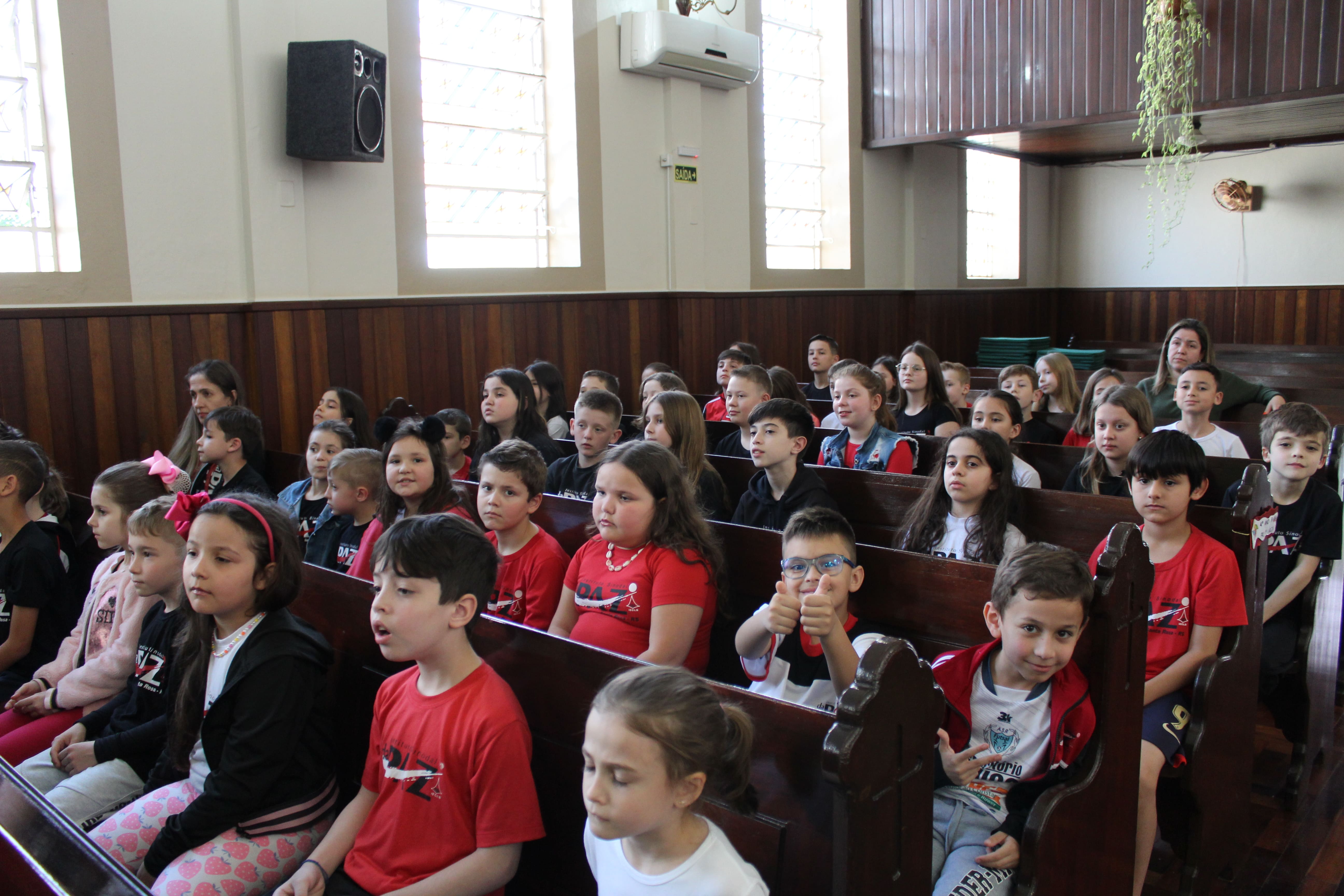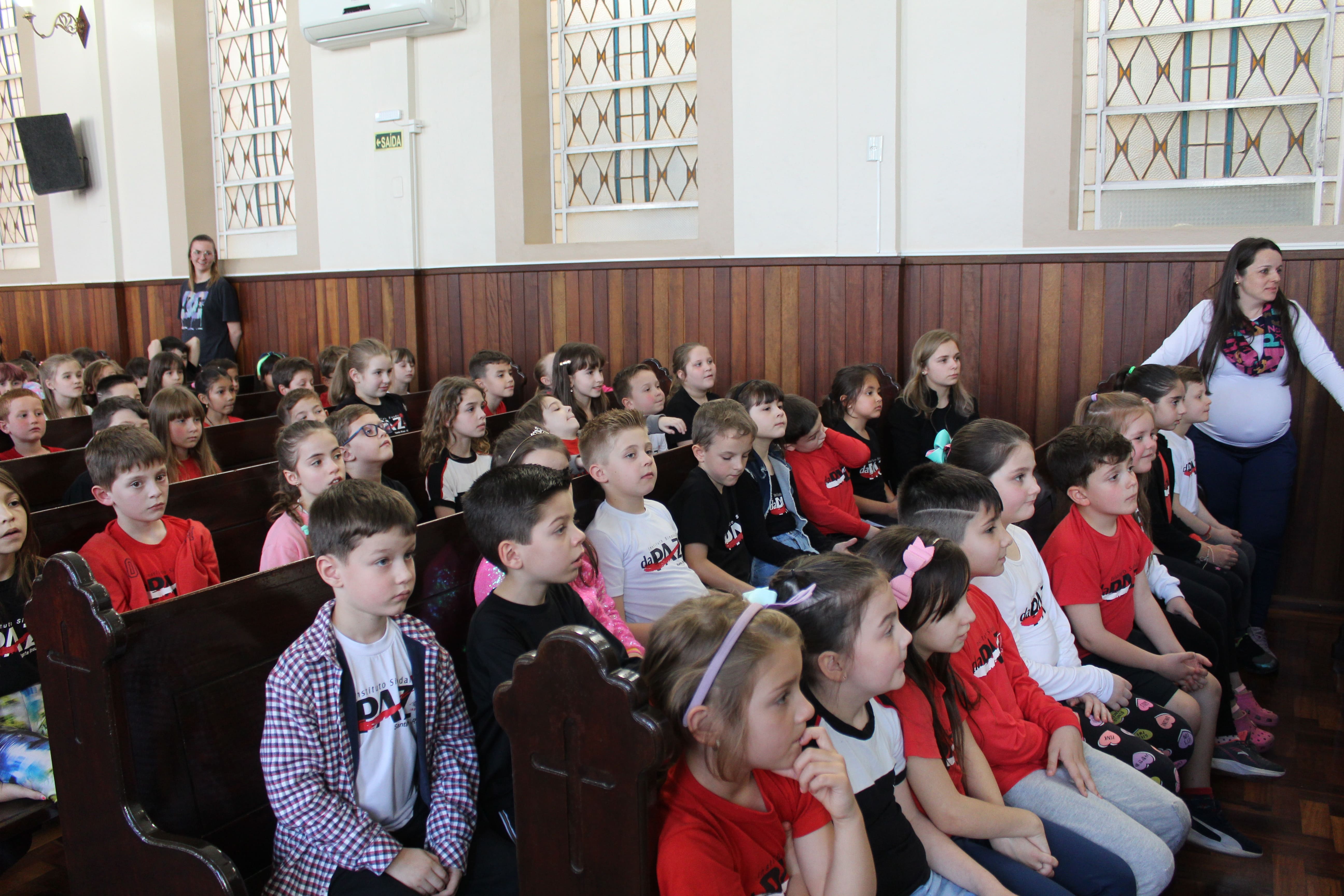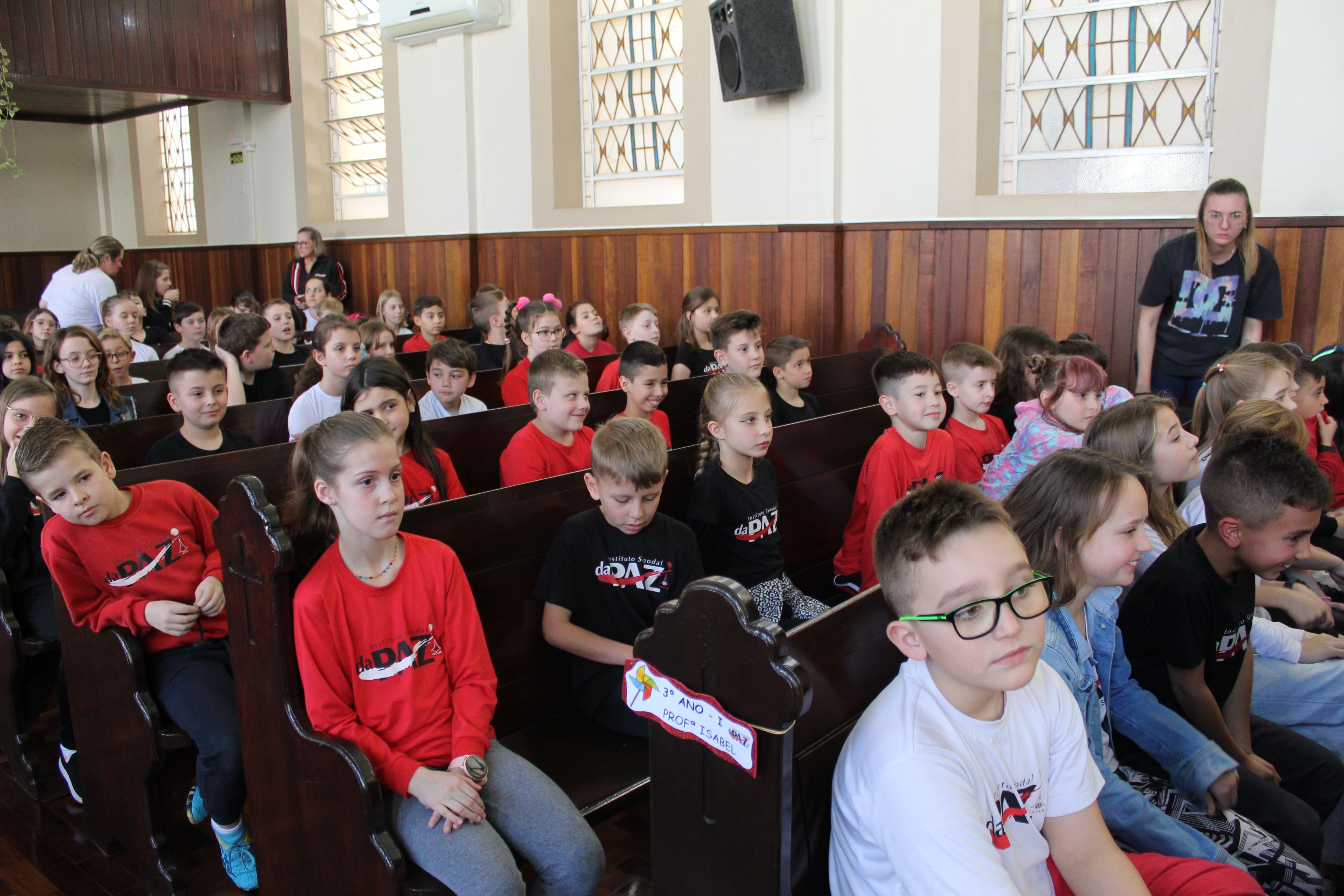 A turma do 3º ano R foi a responsável pela apresentação do Boa Tarde na Igreja. O tema do encontro foi "Formas de demonstrar carinho."