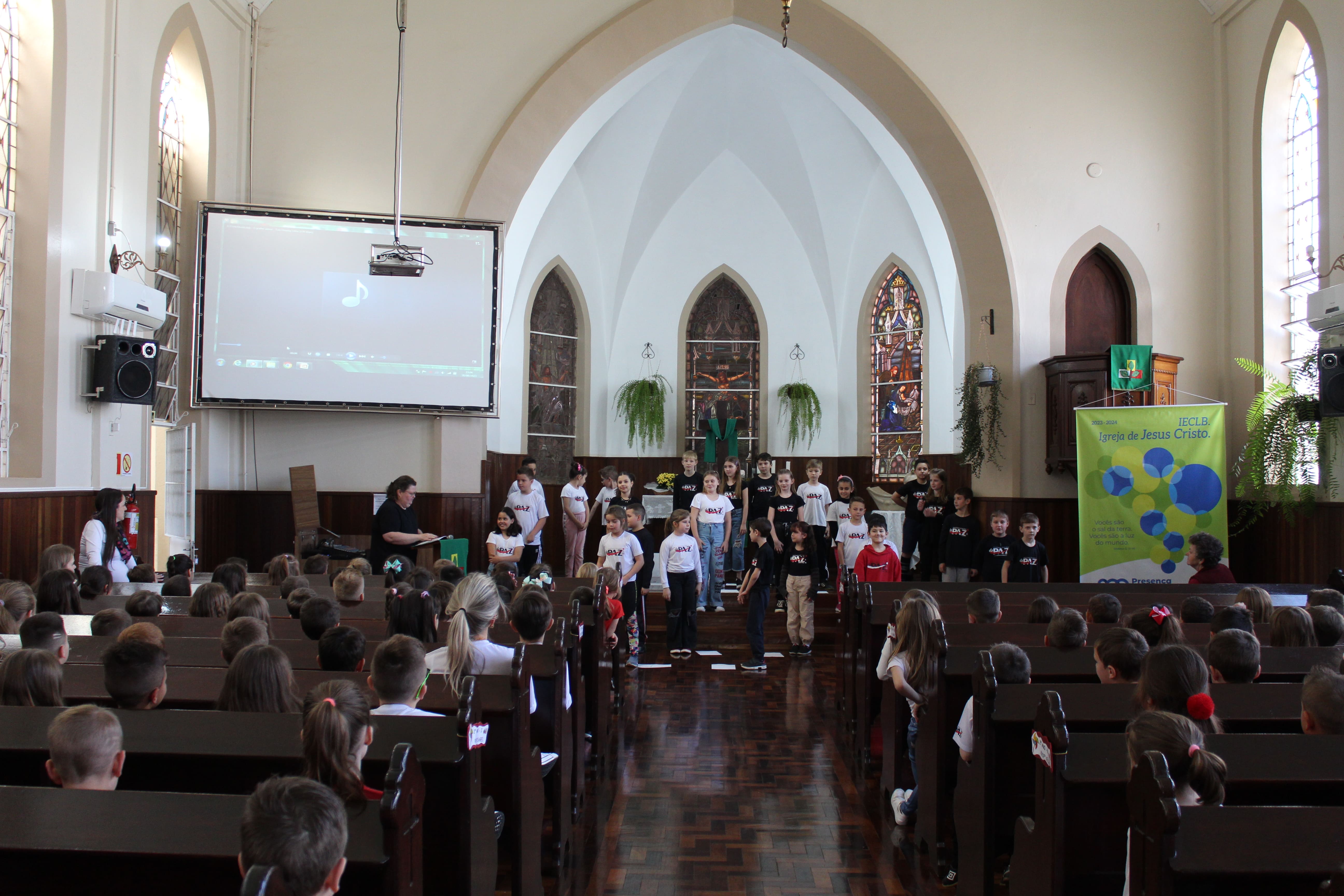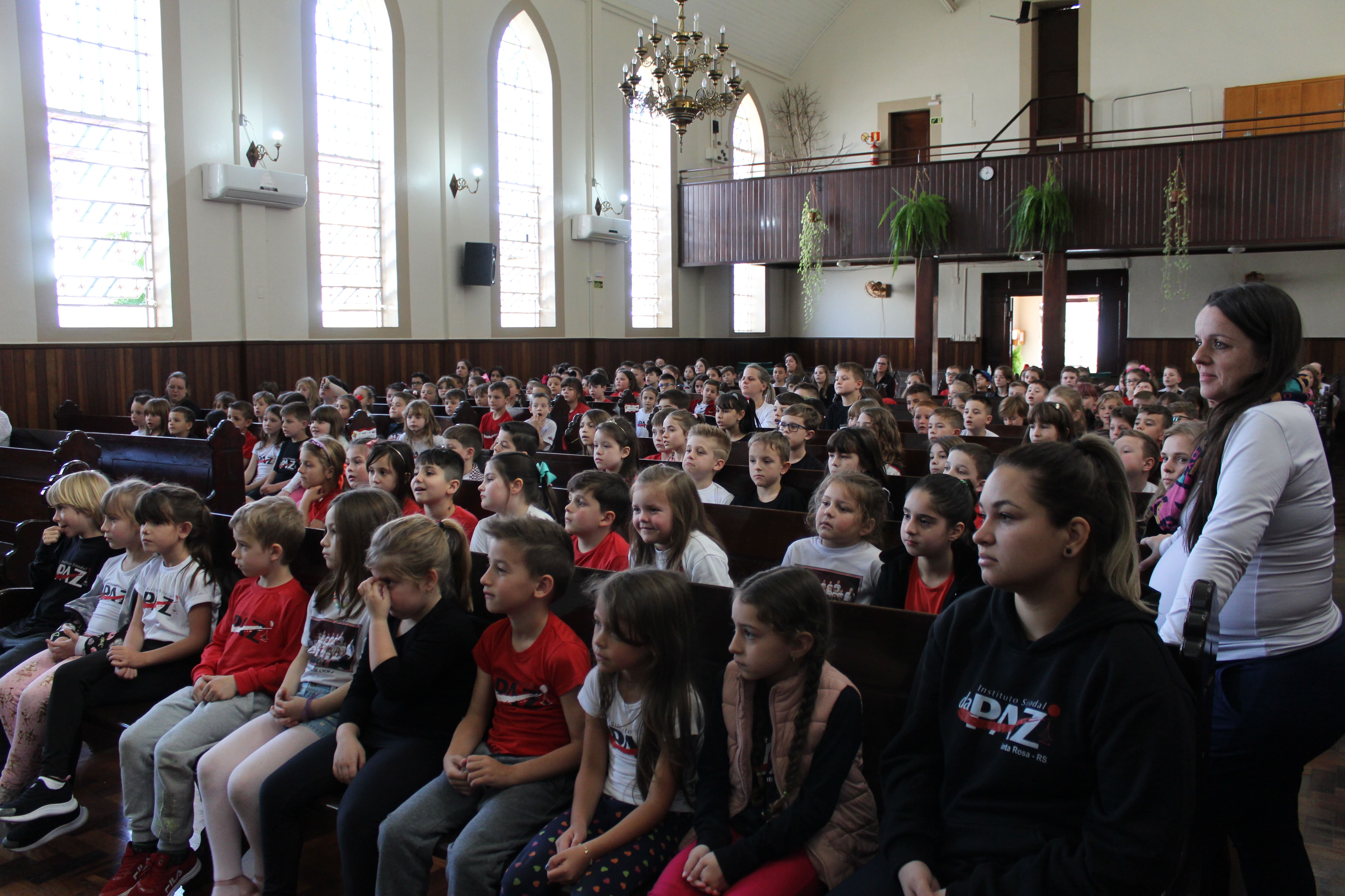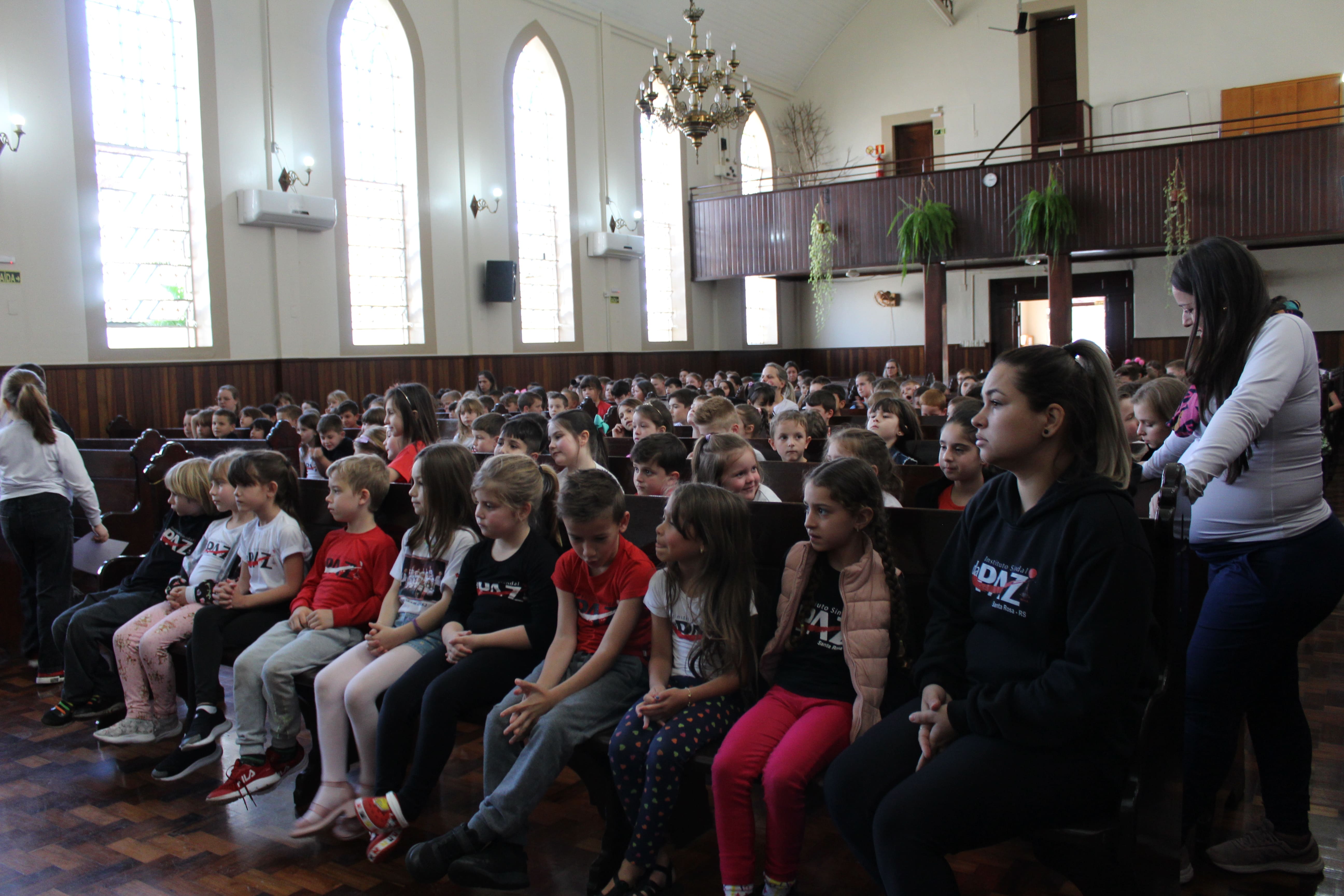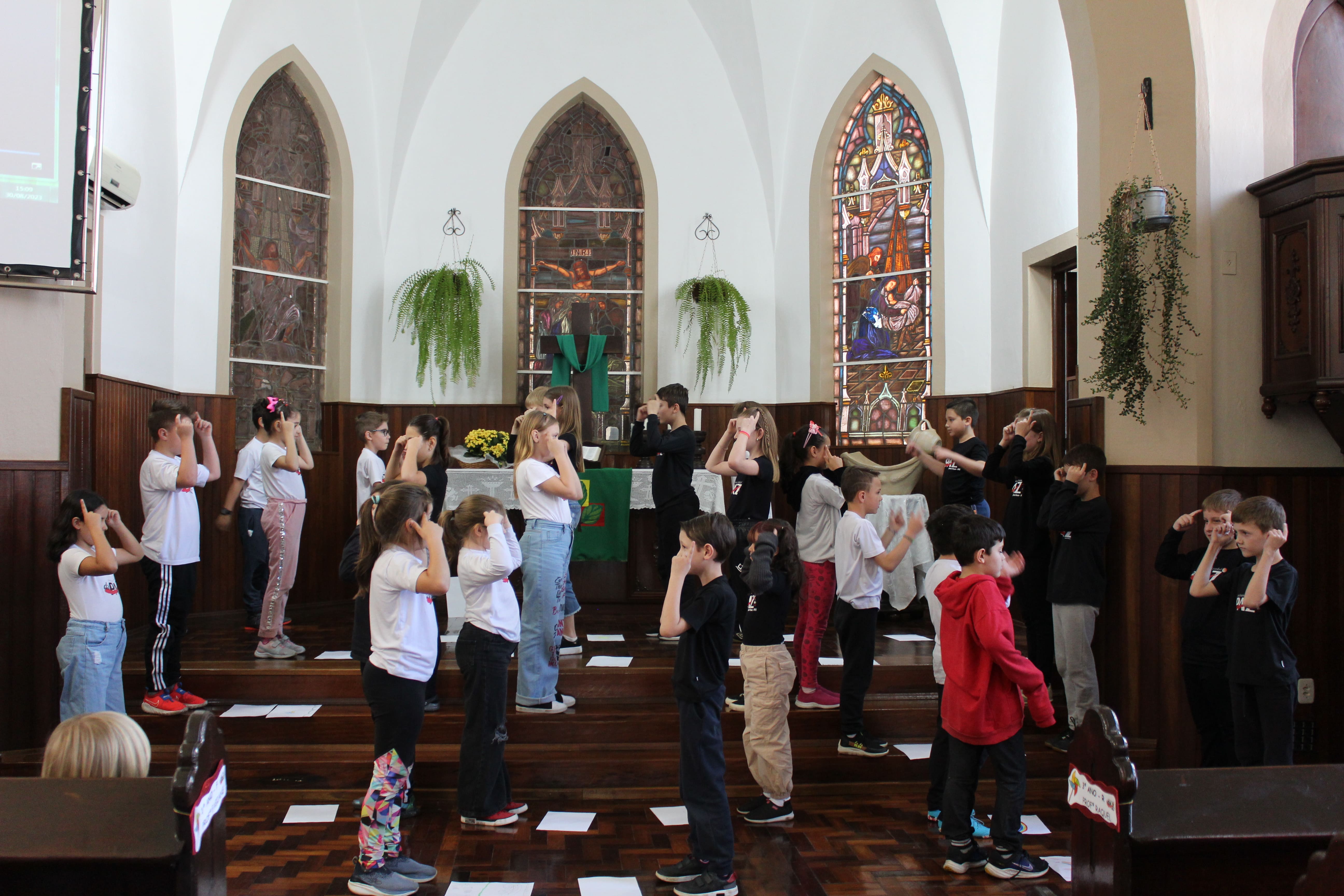 A turma do 3º ano R foi a responsável pela apresentação do Boa Tarde na Igreja. O tema do encontro foi "Formas de demonstrar carinho."