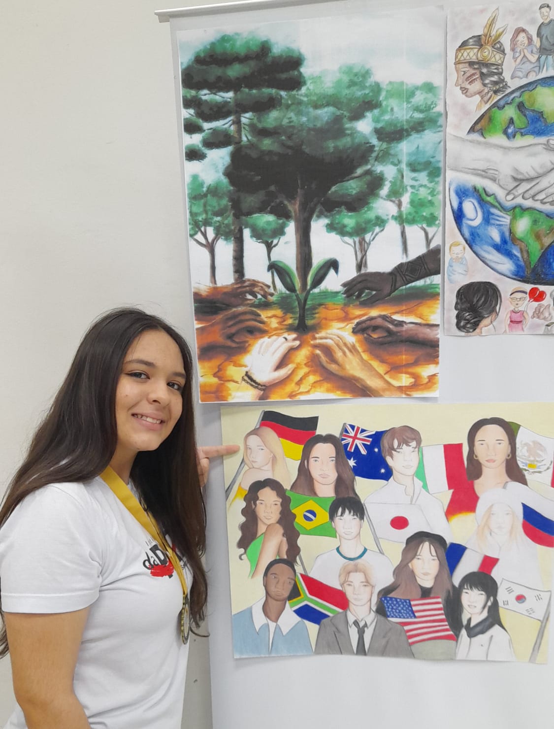 Maria Clara Marciniak e Silva conquistou o 1º lugar, recebendo R$ 500,00 pelo cartaz que encantou a comissão com sua sensibilidade e criatividade. Seu trabalho agora representará Santa Rosa na etapa regional!