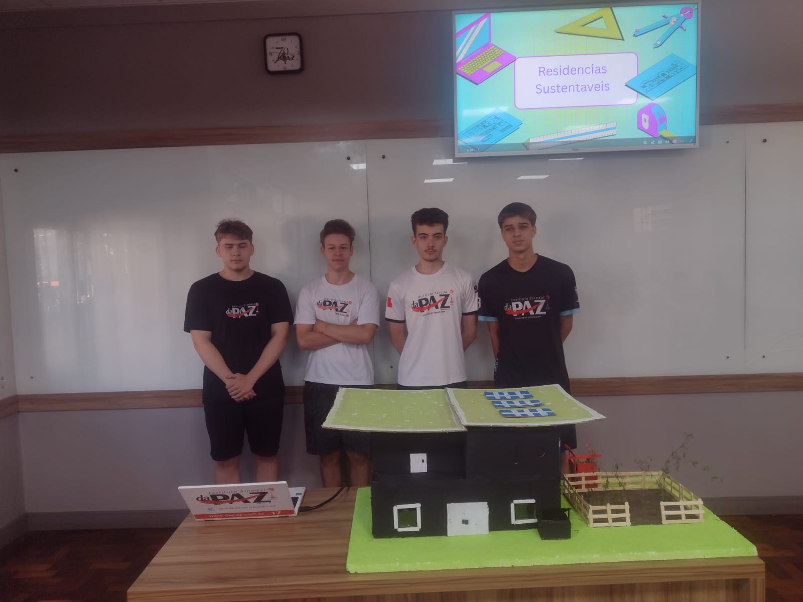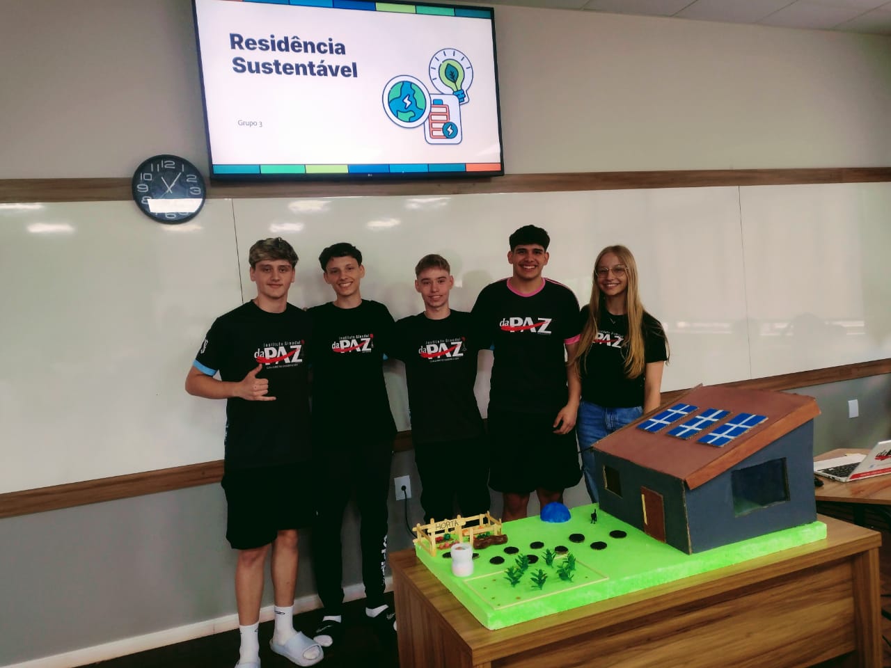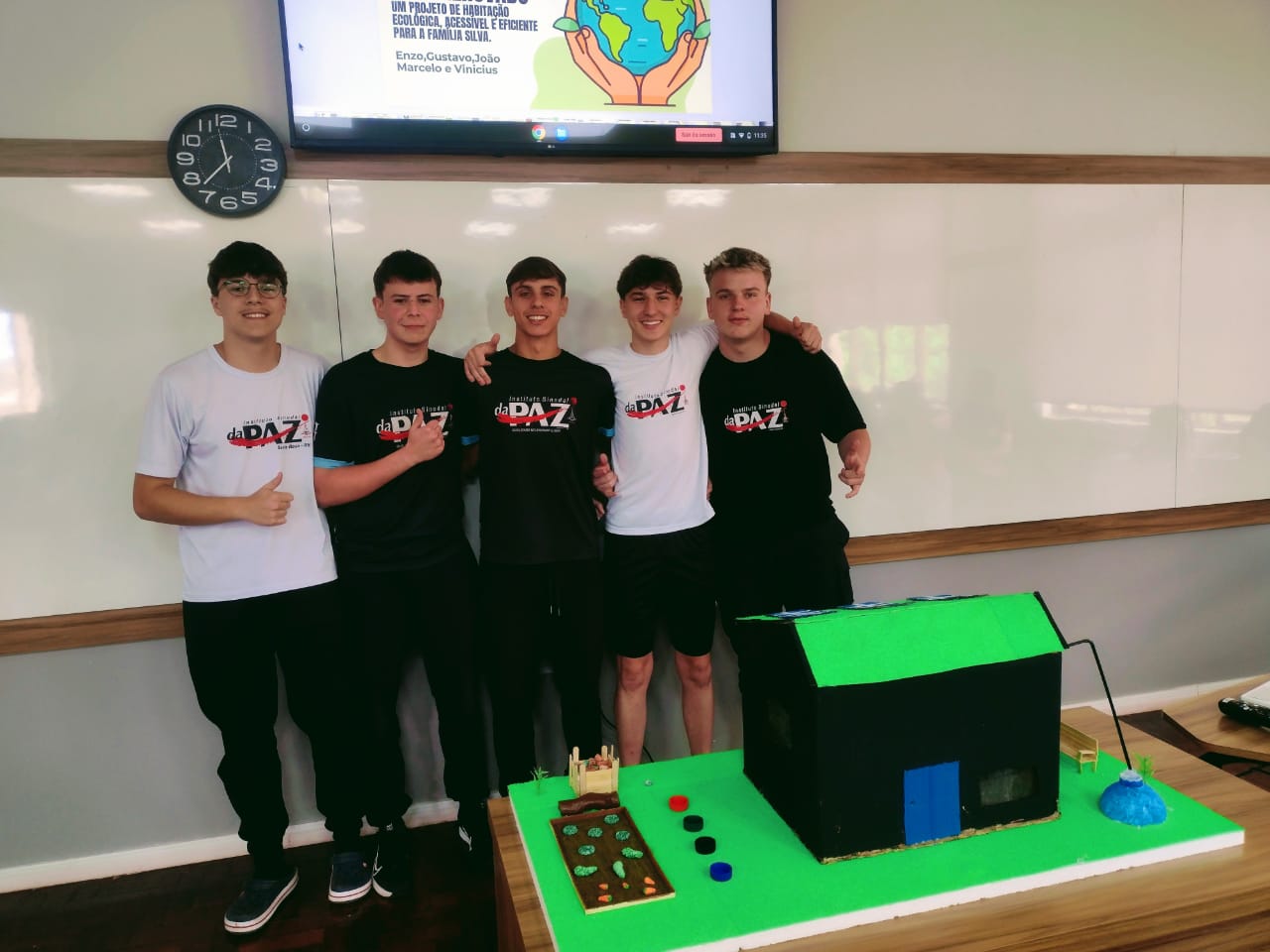 O trabalho foi apresentado pelos alunos do 2ºB aos colegas do 1ºA e 1ºB, compartilhando ideias, soluções criativas e novos olhares para o mundo que queremos transformar.