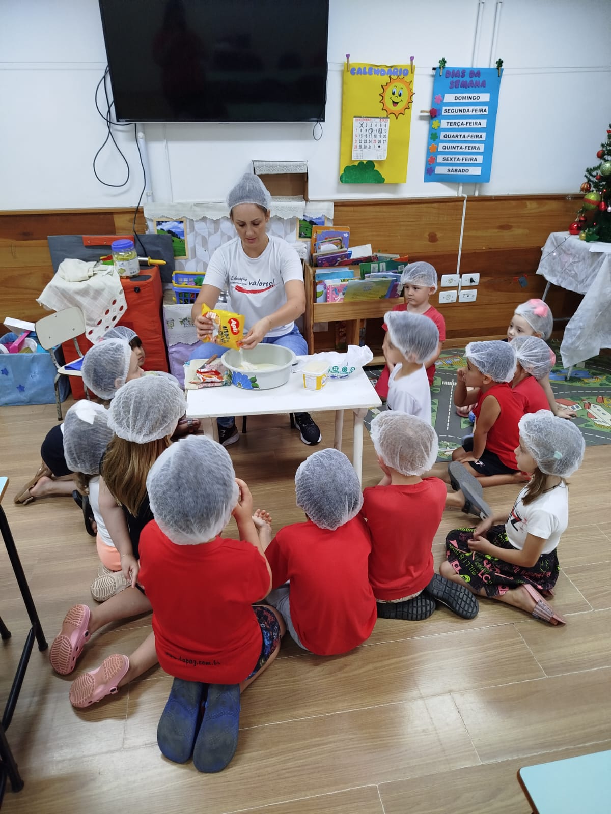 Os alunos da Pré-escola 04 anos V, da professora Vanessa Streda, viraram verdadeiros pequenos chefs!