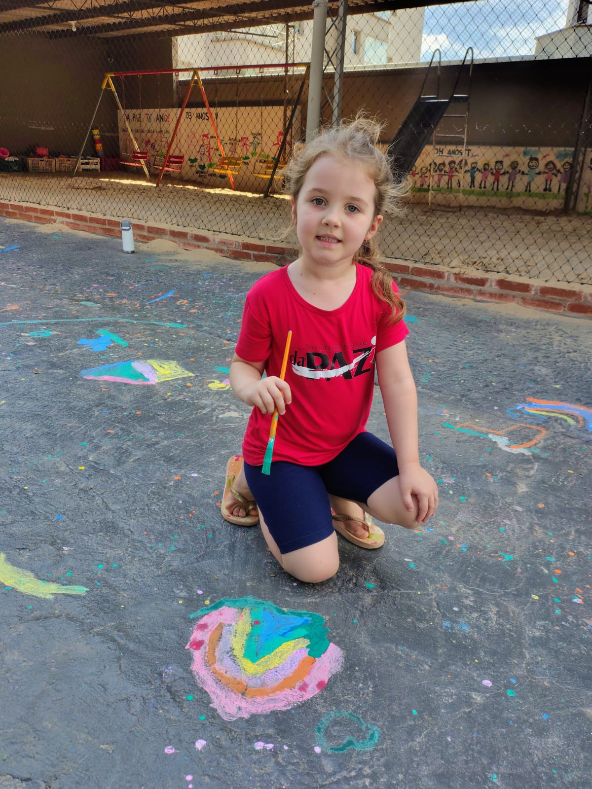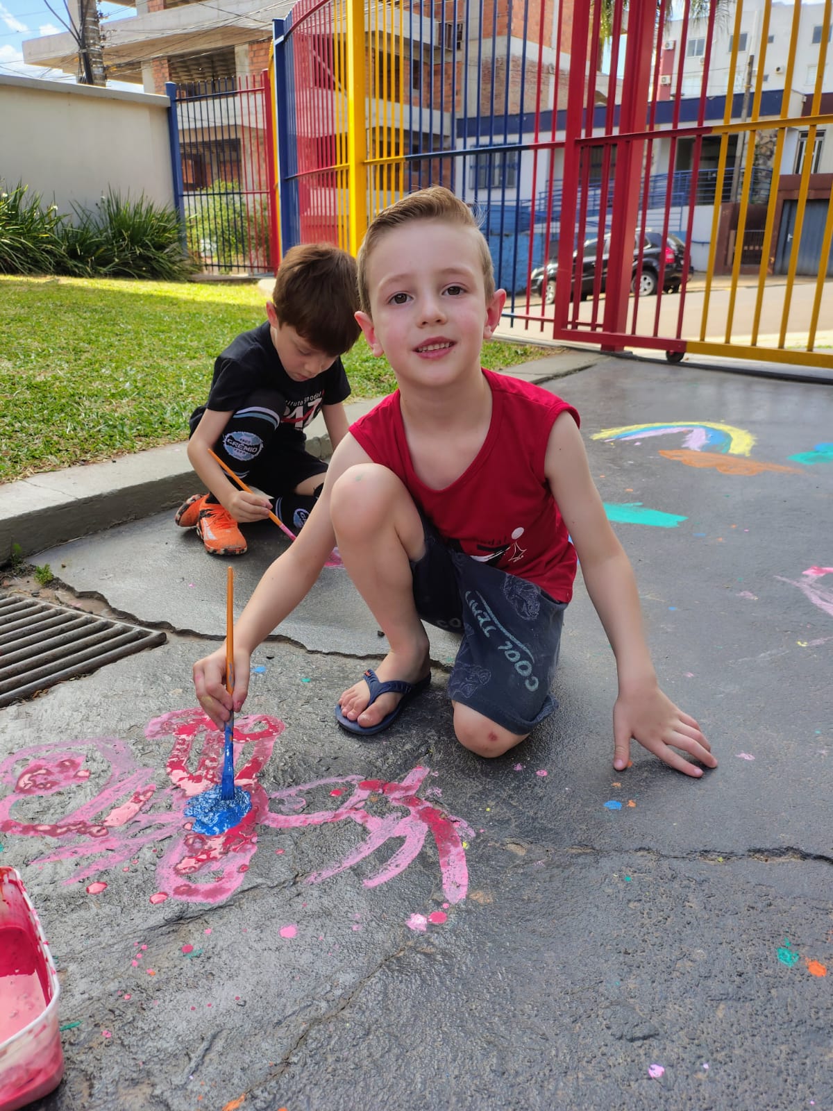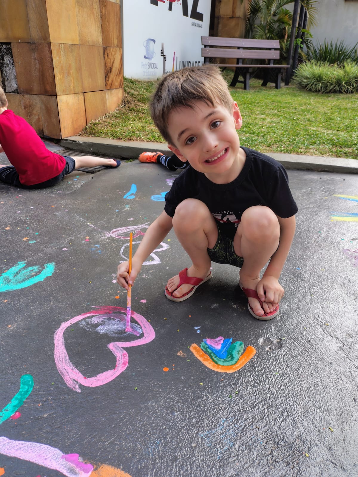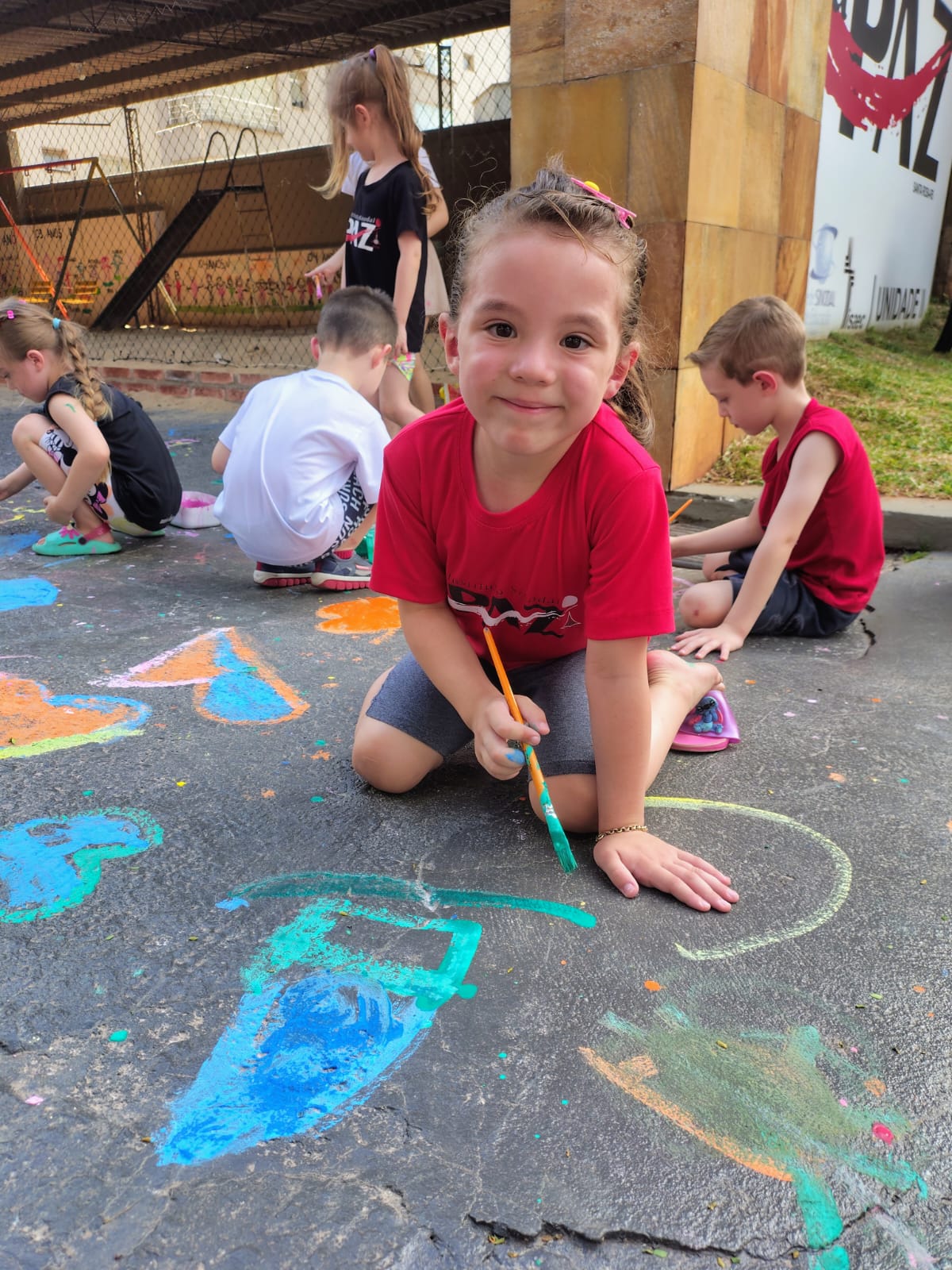 A turma da Pré-escola 04 anos T, da professora Tamara Mucha, viveu um momento cheio de criatividade! Com giz líquido feito na escola, as crianças exploraram formas, criaram desenhos divertidos e deixaram a imaginação brilhar.