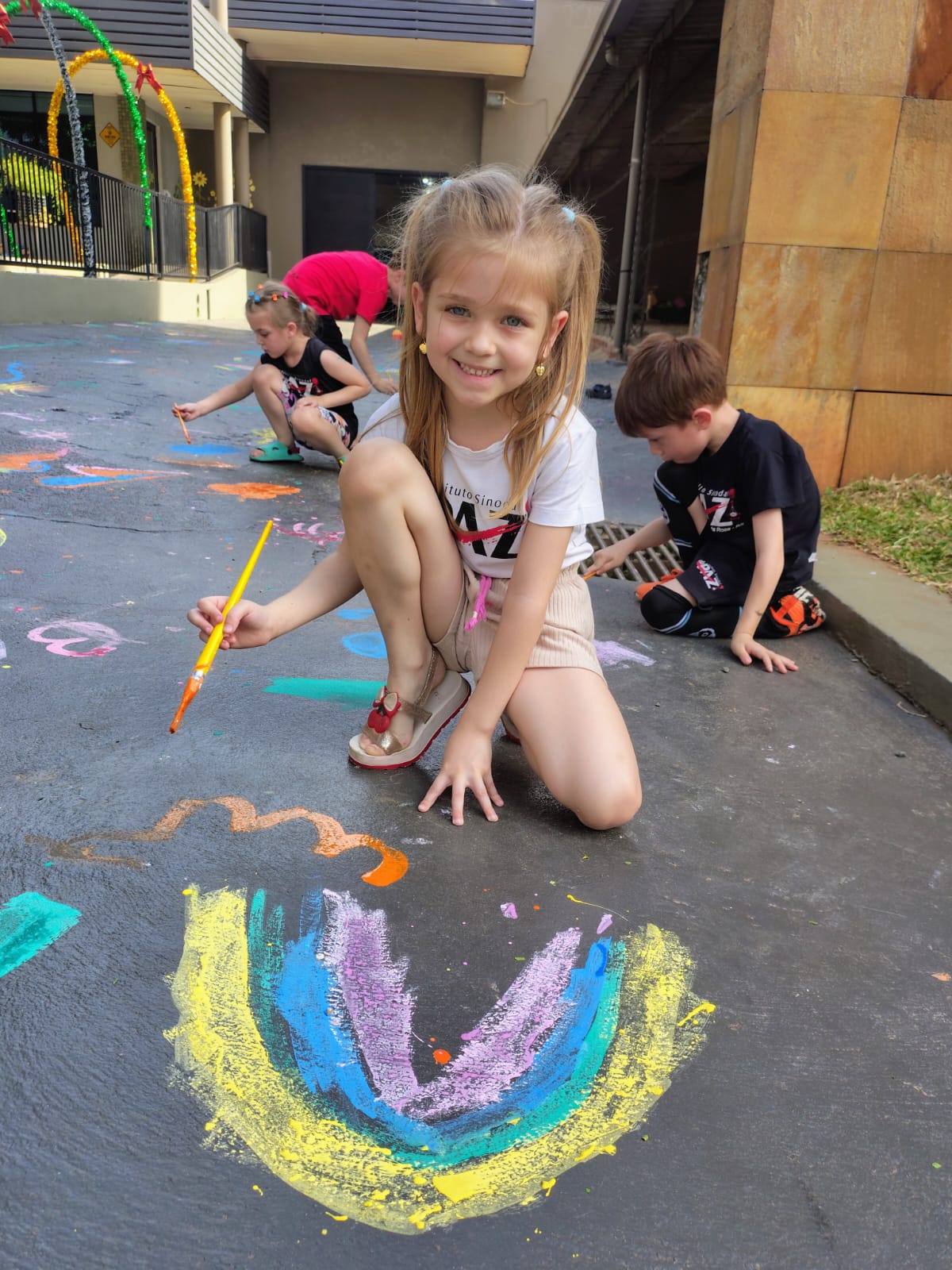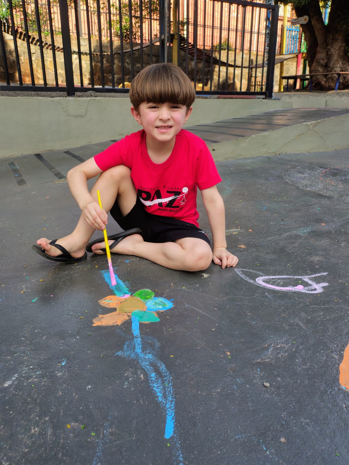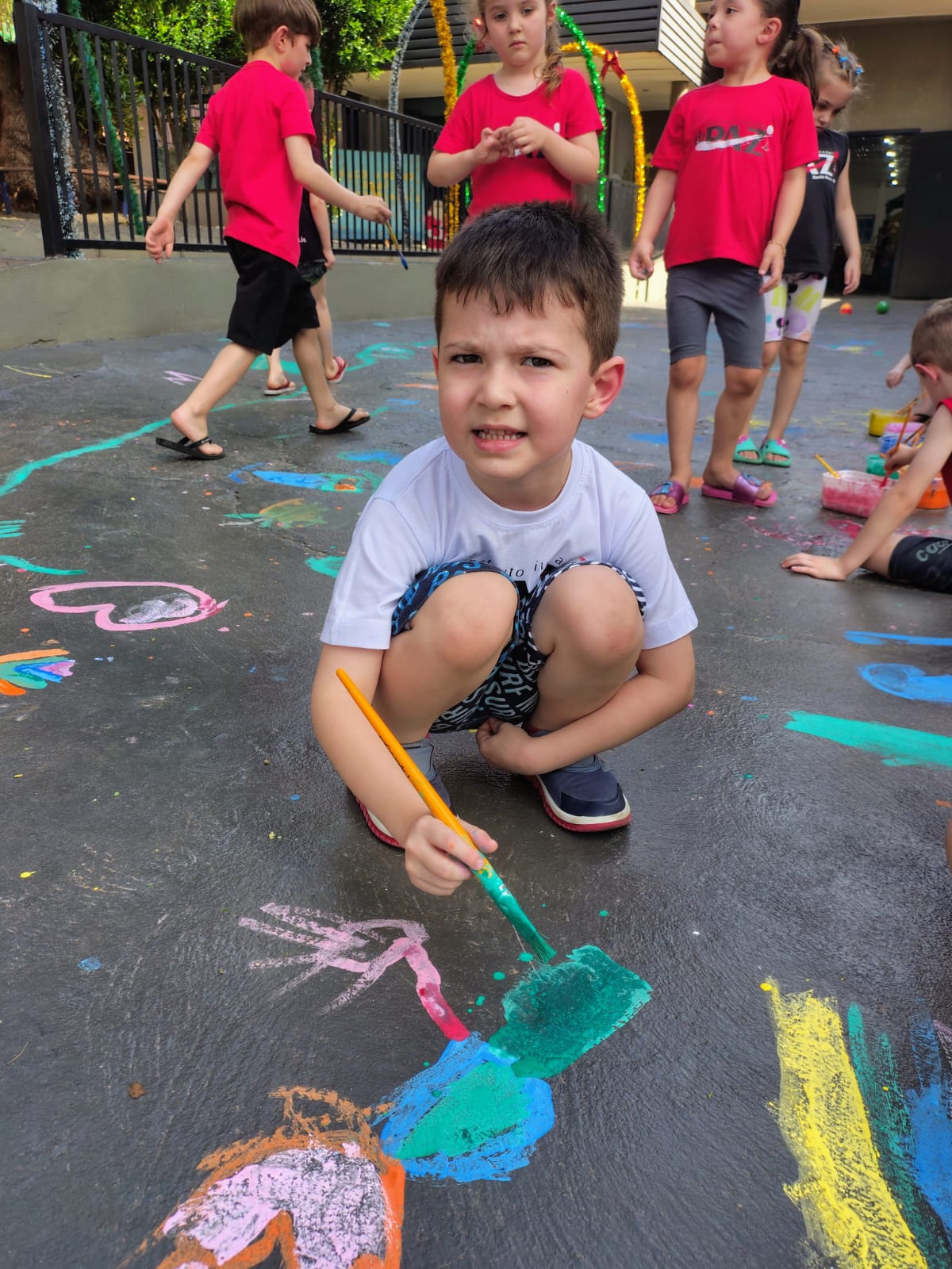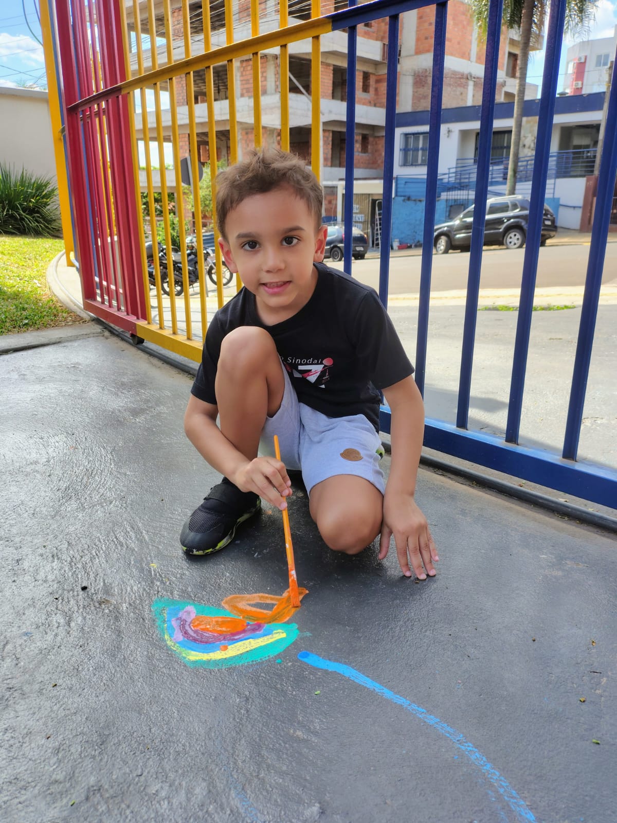 A turma da Pré-escola 04 anos T, da professora Tamara Mucha, viveu um momento cheio de criatividade! Com giz líquido feito na escola, as crianças exploraram formas, criaram desenhos divertidos e deixaram a imaginação brilhar.