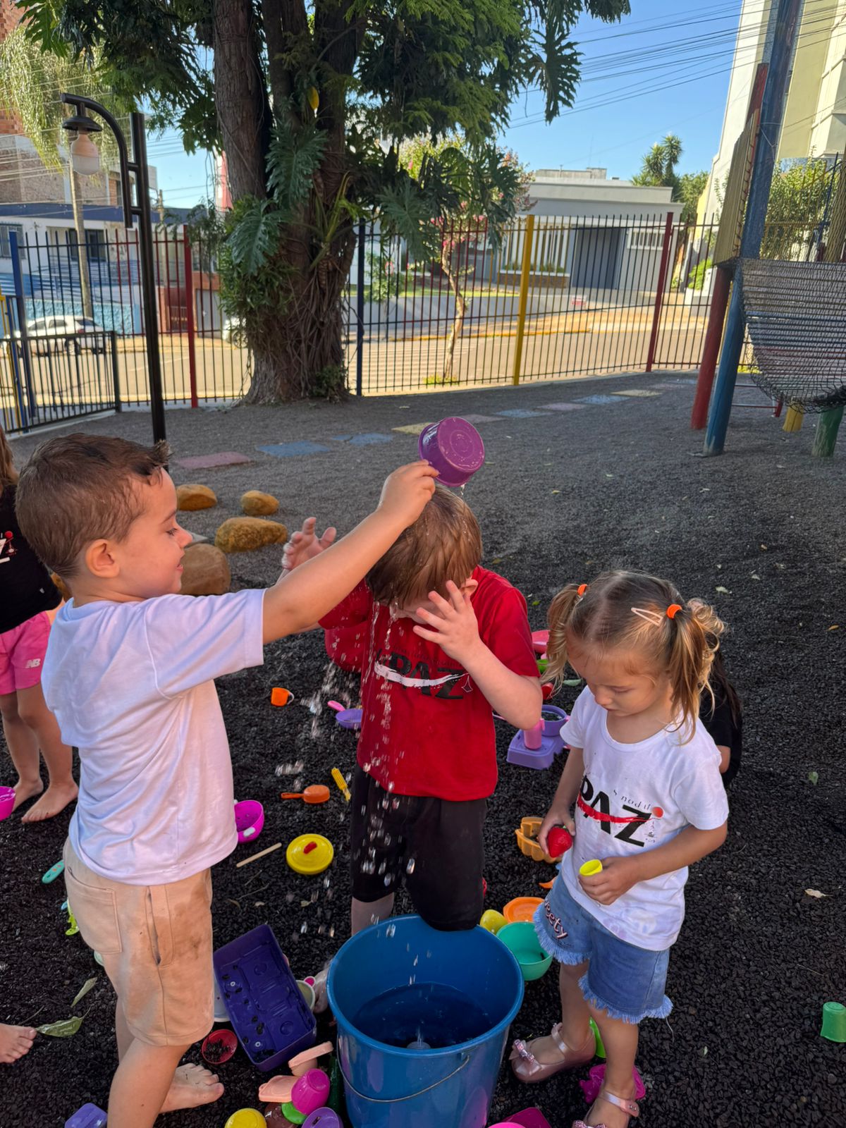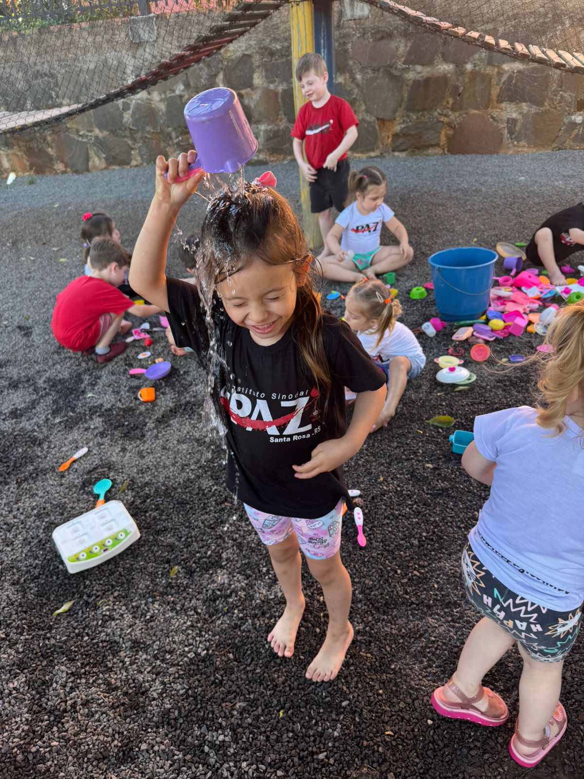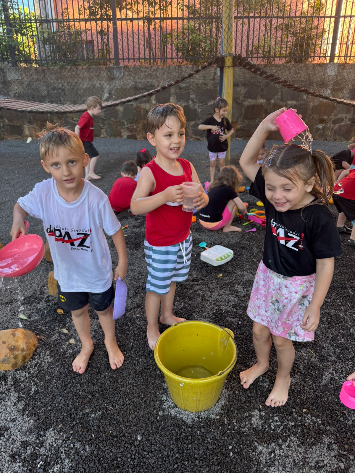 A Turma 03 anos, da professora Vanessa Rigon, se divertiu muito na brincadeira com água!