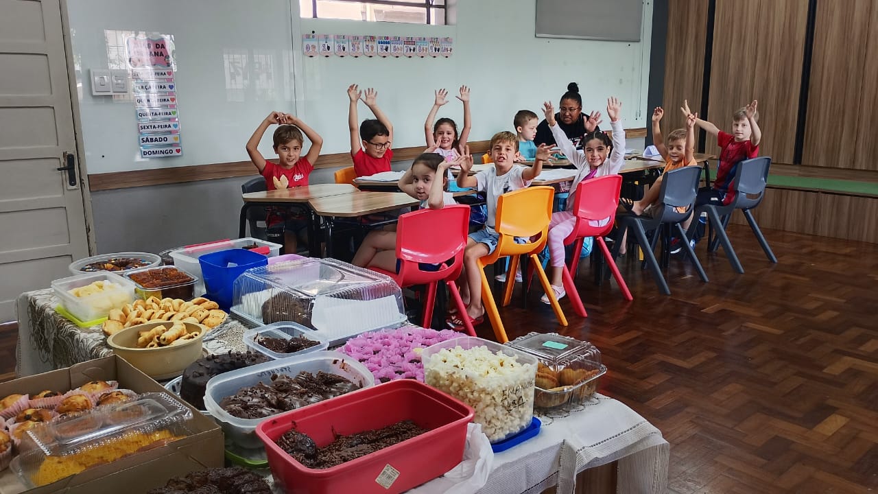 Para encerrar esses dias com chave de ouro, as crianças vieram com camisetas da sua cor preferida, participaram de um delicioso lanche coletivo e se divertiram em atividades animadas com o professor Rafael
