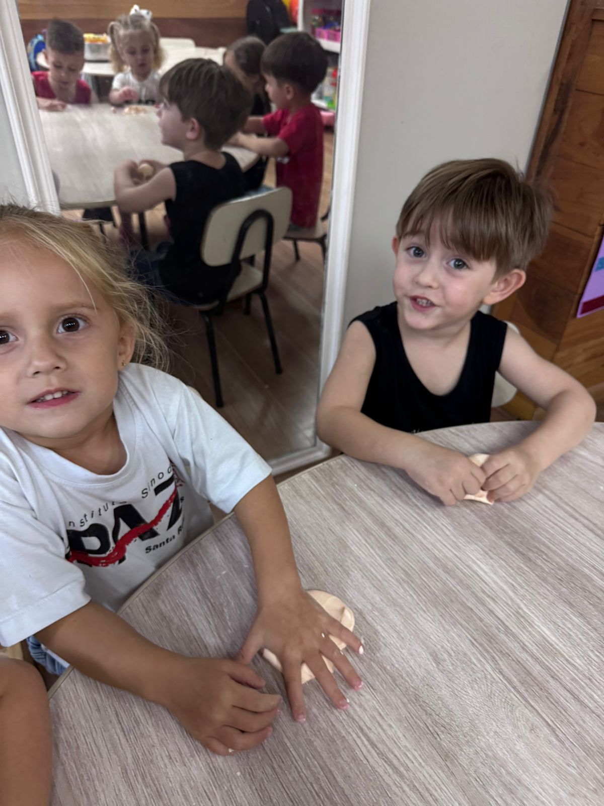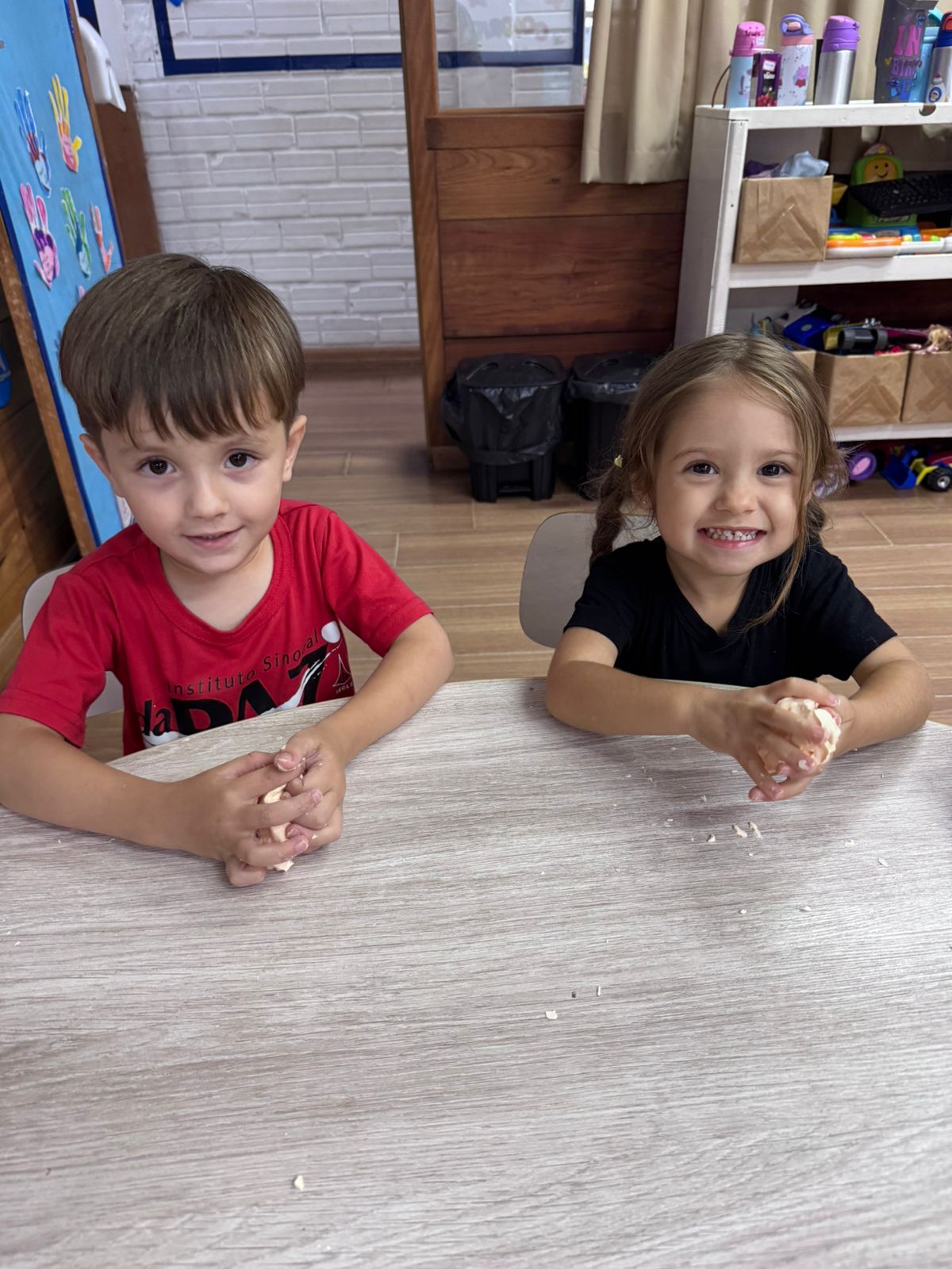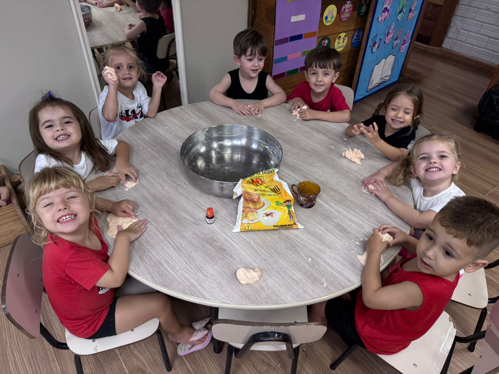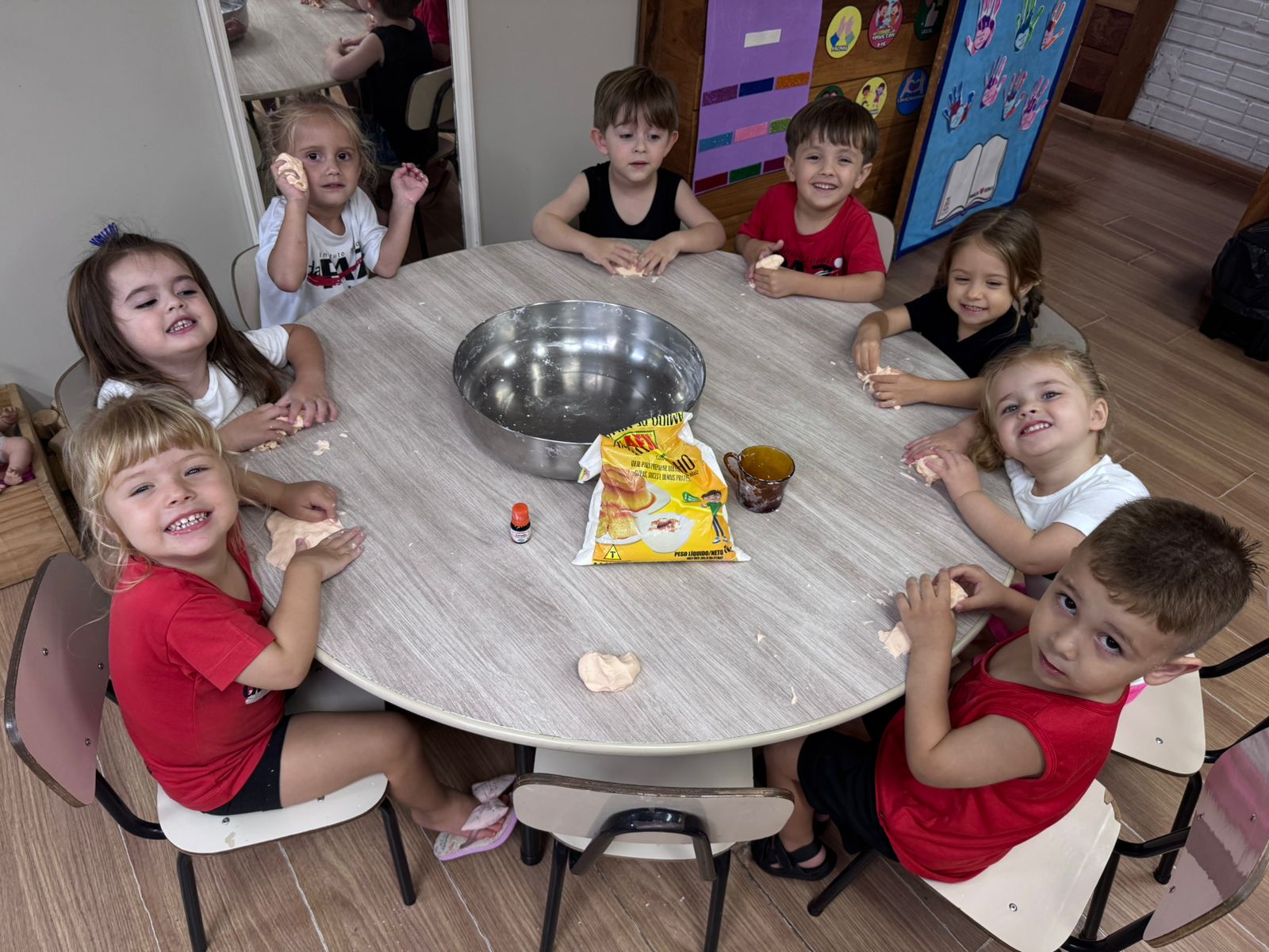 A atividade com massinha de modelar feita com maisena despertou a curiosidade, estimulou os sentidos e abriu espaço para muita criatividade.