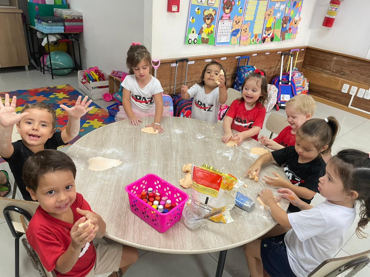 A turma da Educação Infantil – 03 anos, da professora Stefani, viveu momentos de pura descoberta com a massinha caseira. Entre cores, texturas e formas, as crianças exploraram a criatividade, fortaleceram a coordenação motora e exercitaram a curiosidade de maneira leve e divertida.