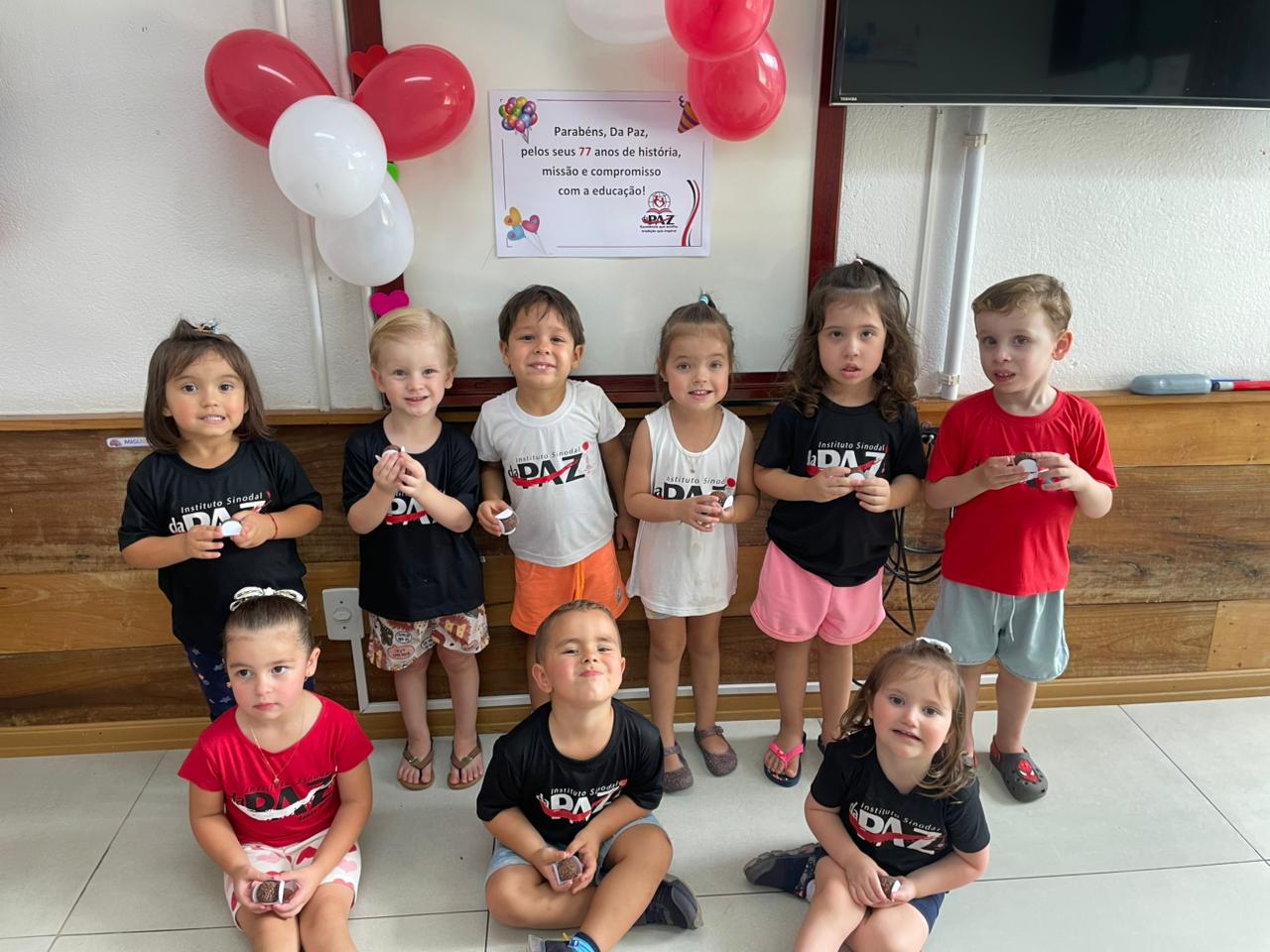 A turma 03 anos da professora Stefani entrou no clima da comemoração e, para adoçar esse momento tão especial, nossos pequenos receberam um delicioso brigadeiro! ????✨ Um gesto simples, mas cheio de significado — porque celebrar também é compartilhar sorrisos, memórias e afeto.