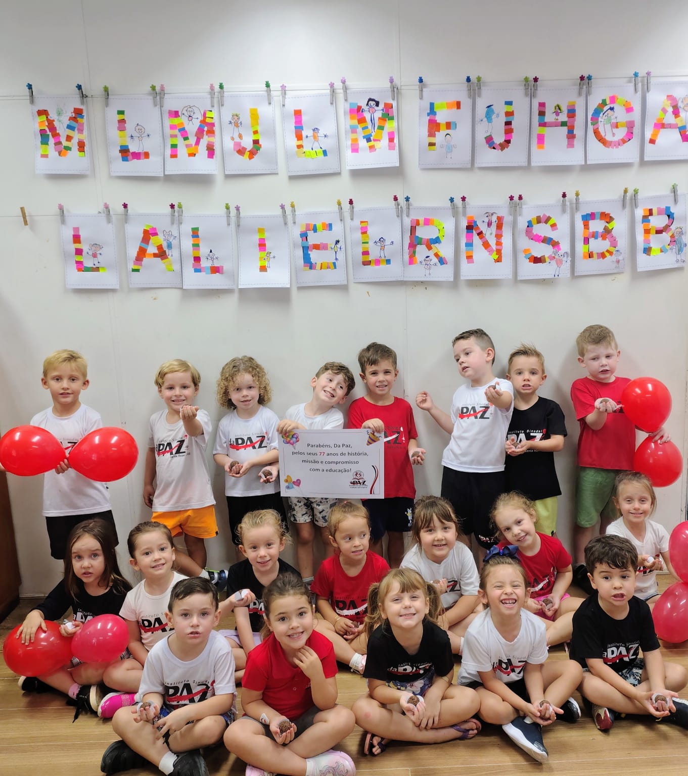 A turma da Pré-Escola 04 anos T, da professora Tamara, também comemorou com muito entusiasmo os 77 anos do Instituto Sinodal Da Paz!