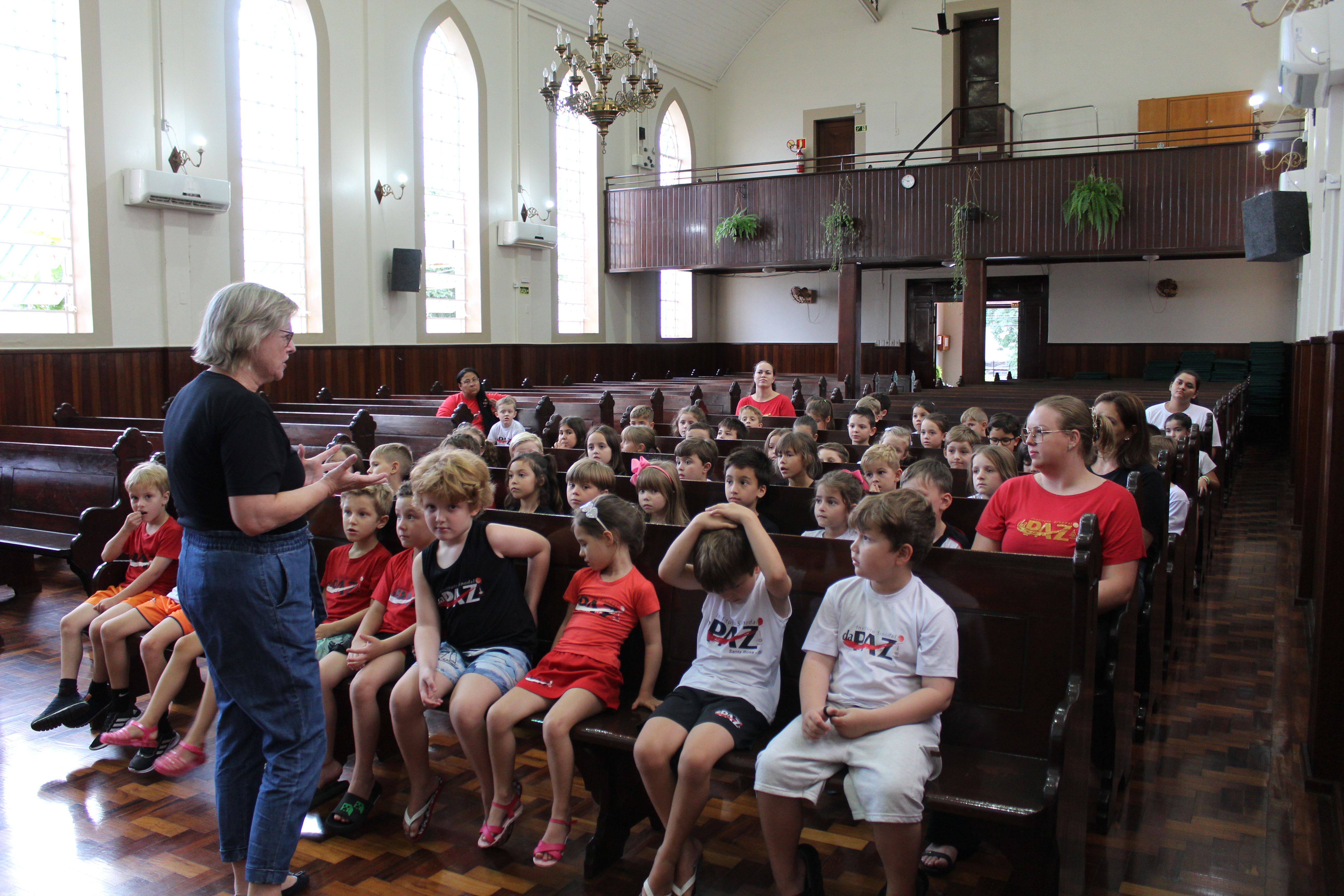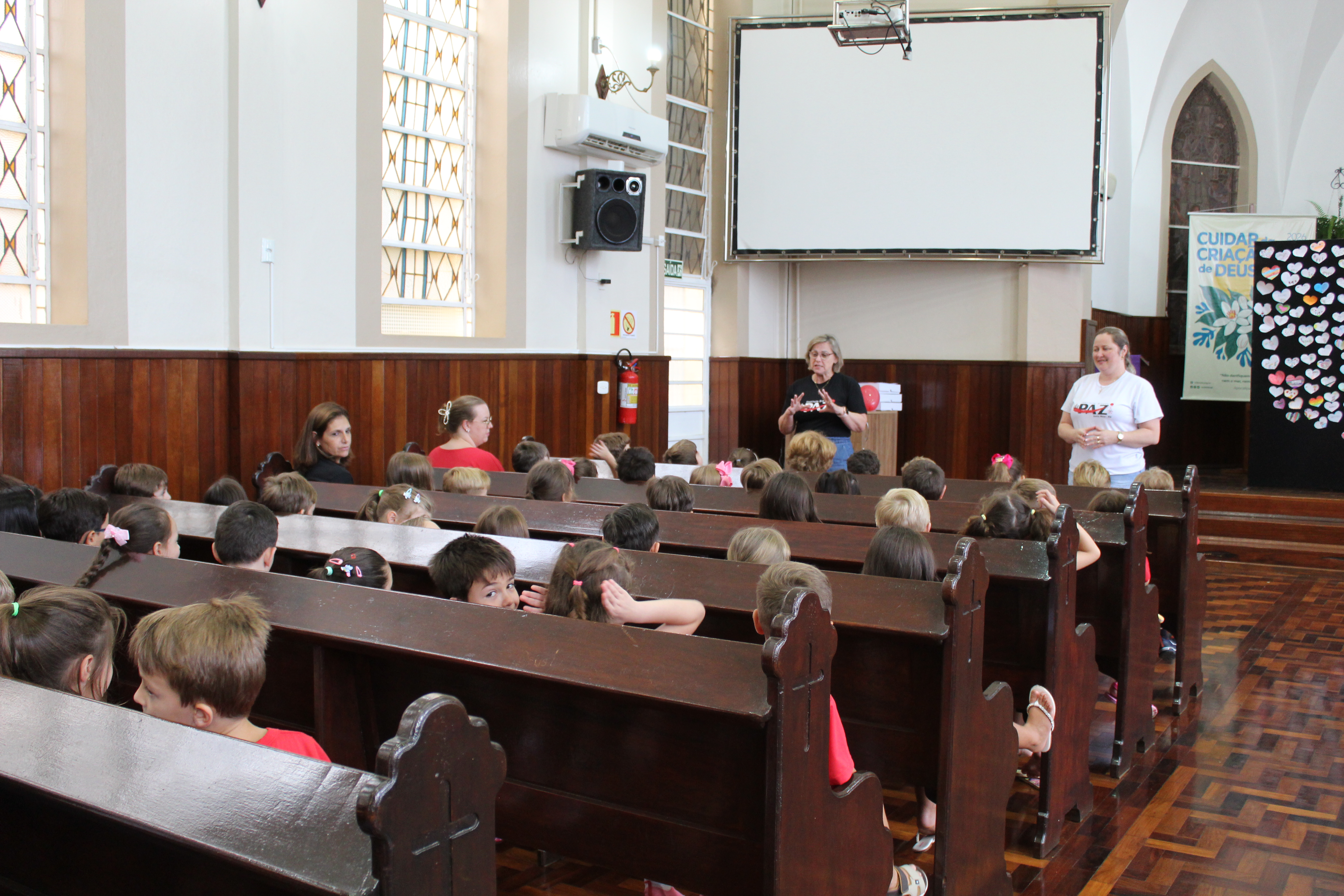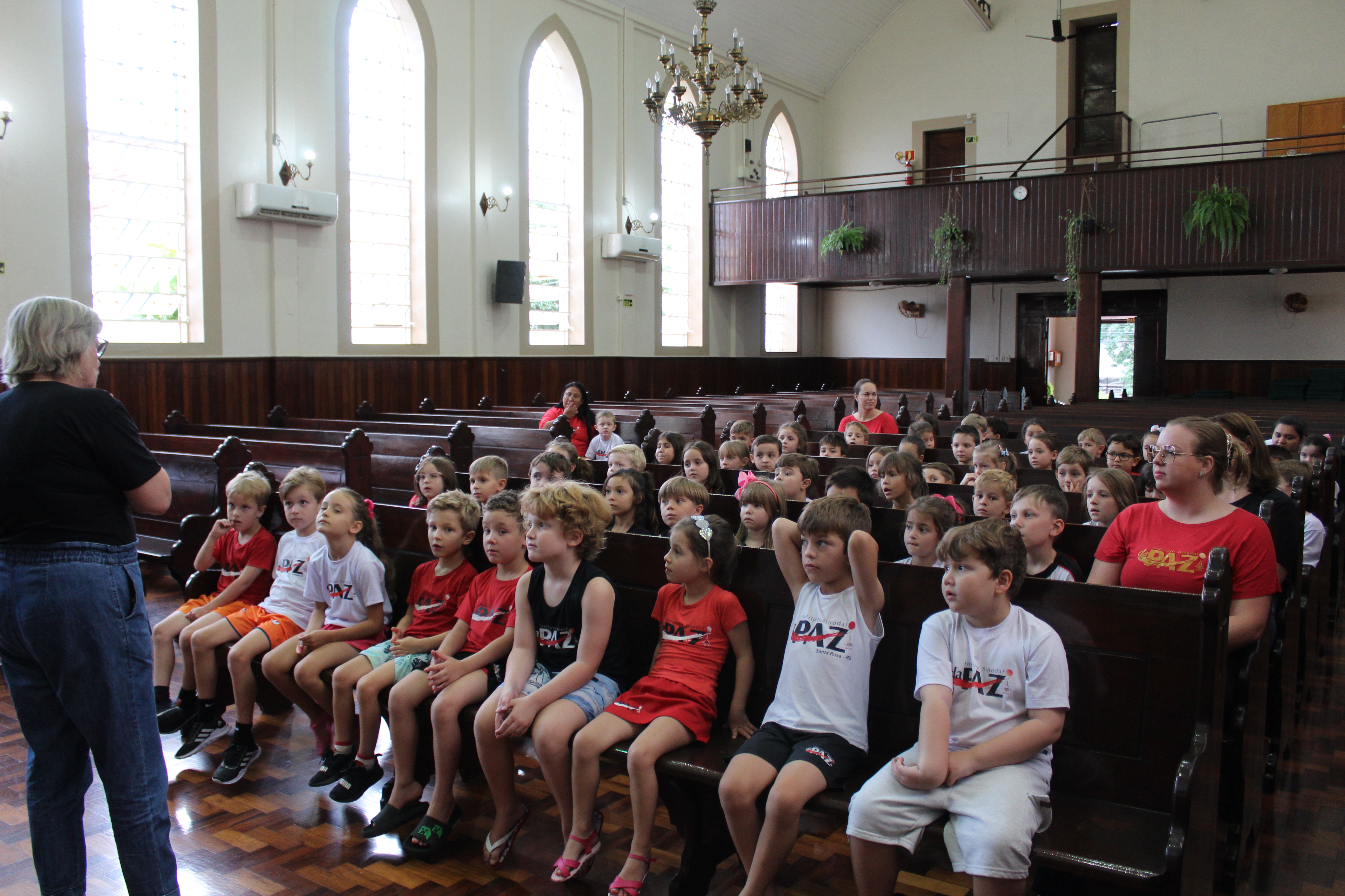 Os alunos foram recepcionados na igreja, onde ouviram um breve histórico compartilhado pela diretora, relembrando a trajetória construída ao longo dessas mais de sete décadas de dedicação à educação.