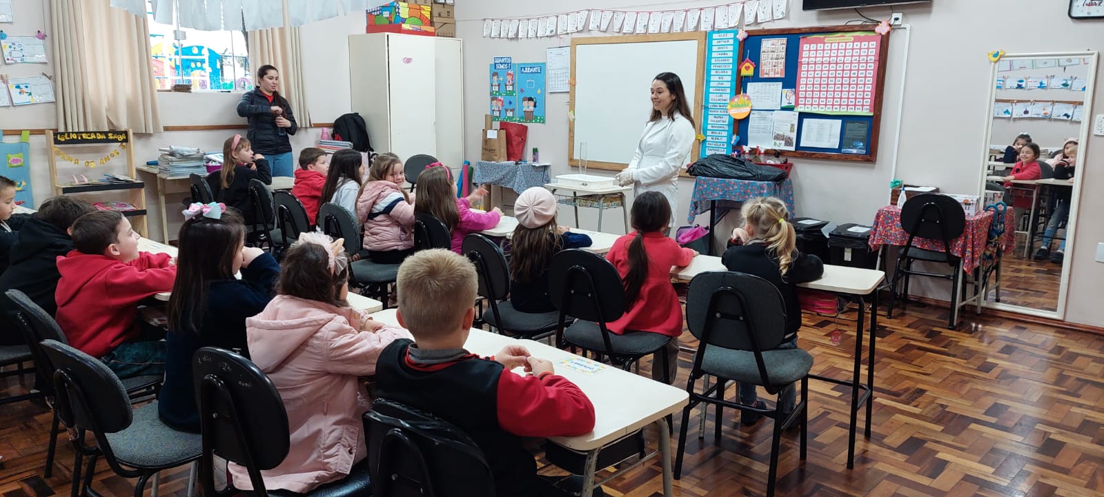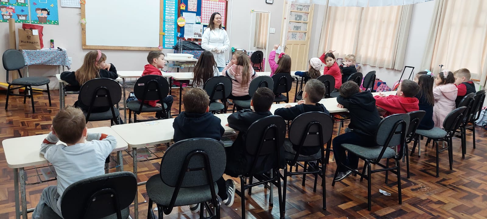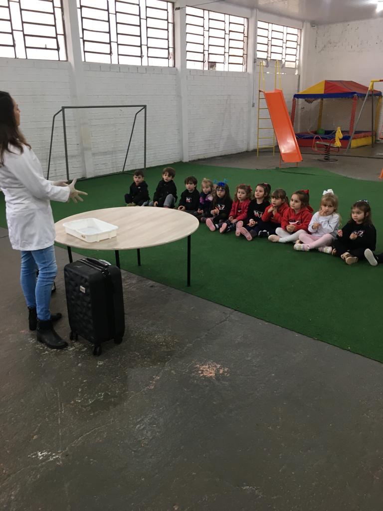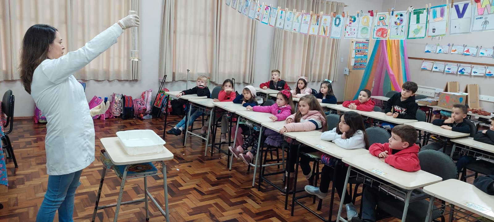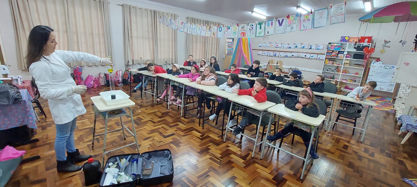 A Mamâe Eva, que é professora de uímica do Da Paz, prepareou uma experiência muito legal e realizou com as crianças.