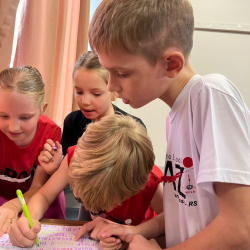 Turma do 2⁰ ano K se desafiando, em grupos, na Oficina de Robótica - ROBOMIND.